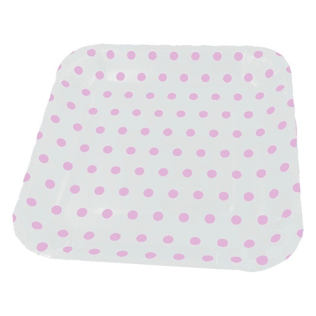 Assiettes carrées à pois de 22 x 22 cm - 6 unités