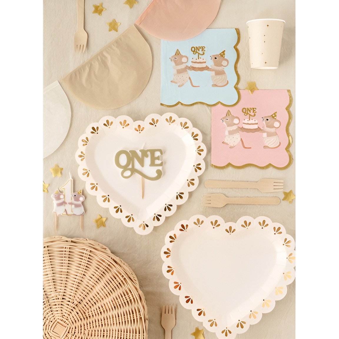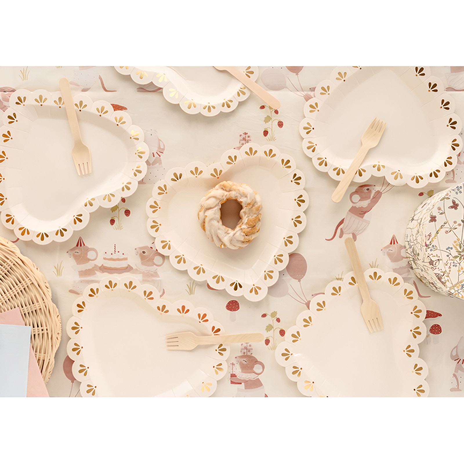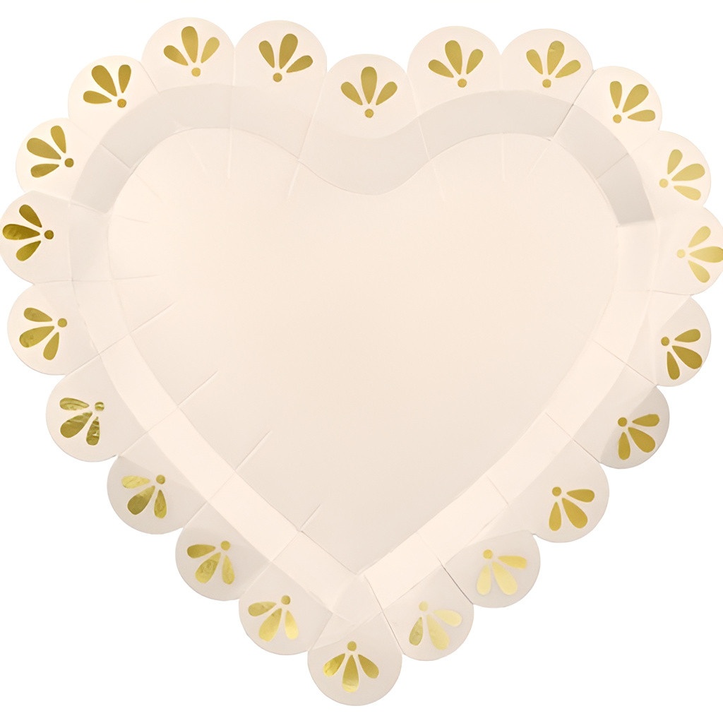 Ces assiettes en papier, en forme de coeur et de ton crème agrémentées d'éléments dorés, apportent une touche romantique et sophistiquée. Leur finition élégante met en valeur la présentation de votre table lors de mariages et d'événements formels. Le format convient pour les entrées, desserts et petites bouchées tout en préservant une esthétique soignée. Produit jetable conçu pour faciliter l'organisation de vos événements sans que vous ne sacrifiiez le style.