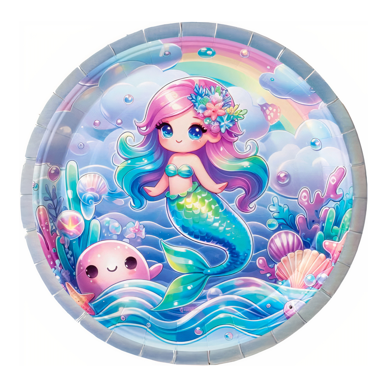 Assiettes sirènes Kawaii iridescentes 23 cm - 6 pièces