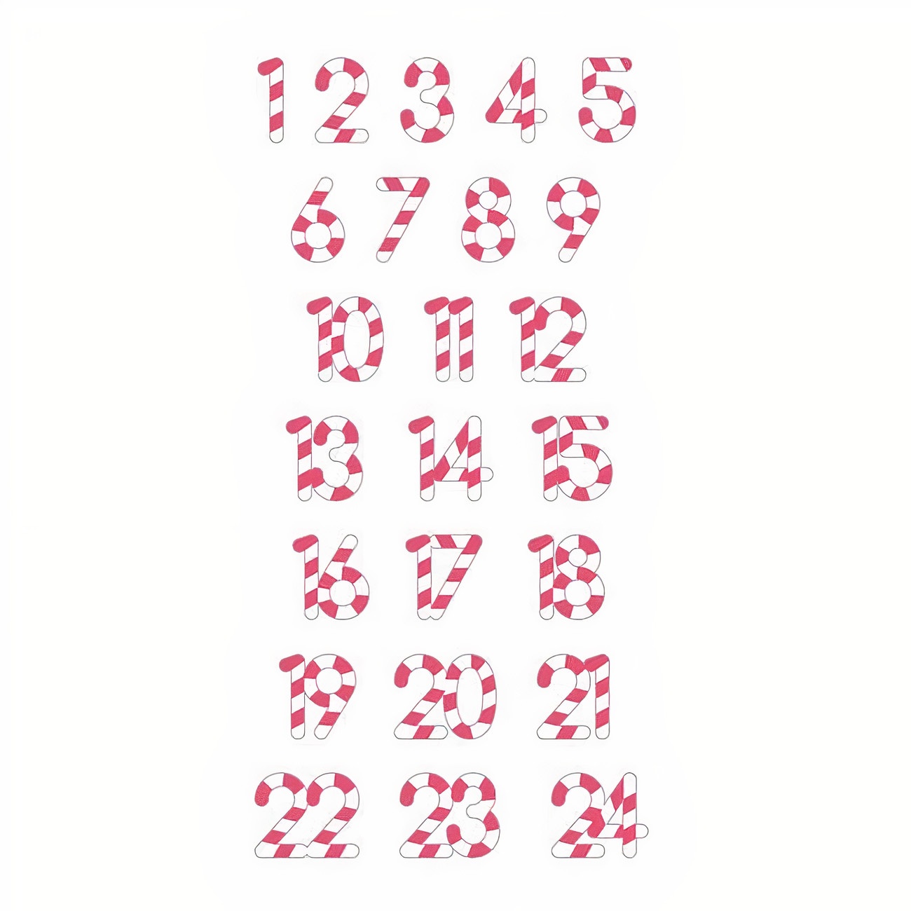 Autocollants de numéros en forme de cannes de bonbon