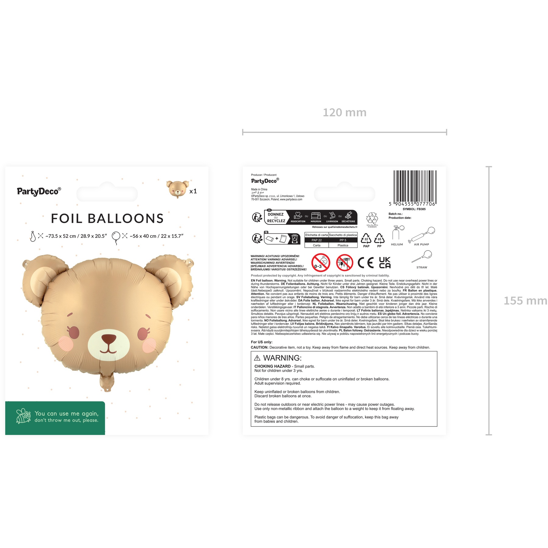 - Matériau mylar (foil) résistant qui conserve son éclat et sa forme pendant la fête.