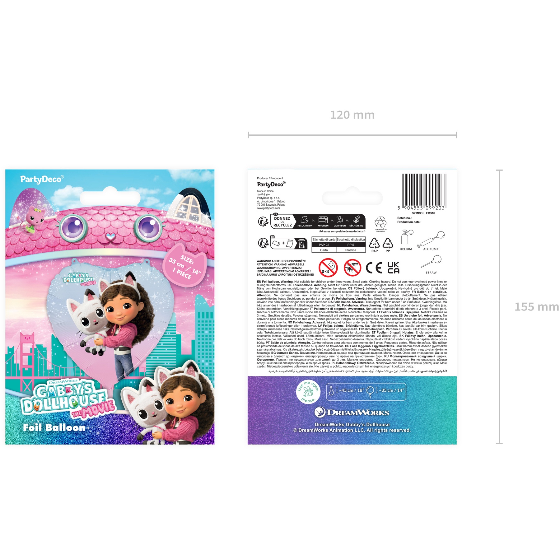 Ballon Gabby's Dollhouse en forme de coeur de 35 cm