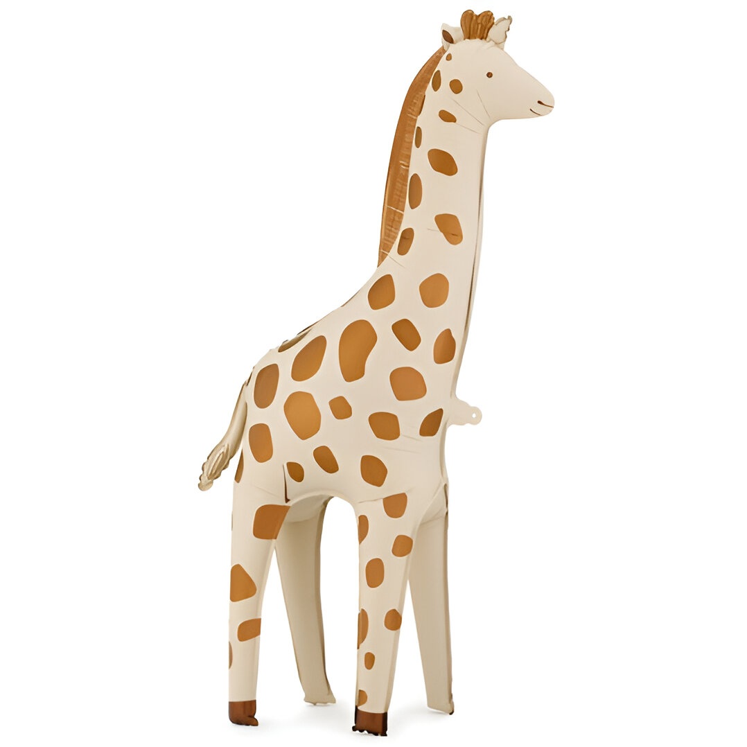 Ballon girafe autoportant en tons beige clair et brun, au design élancé et saisissant, idéal pour vos ambiances enfantines sur le thème du safari.
