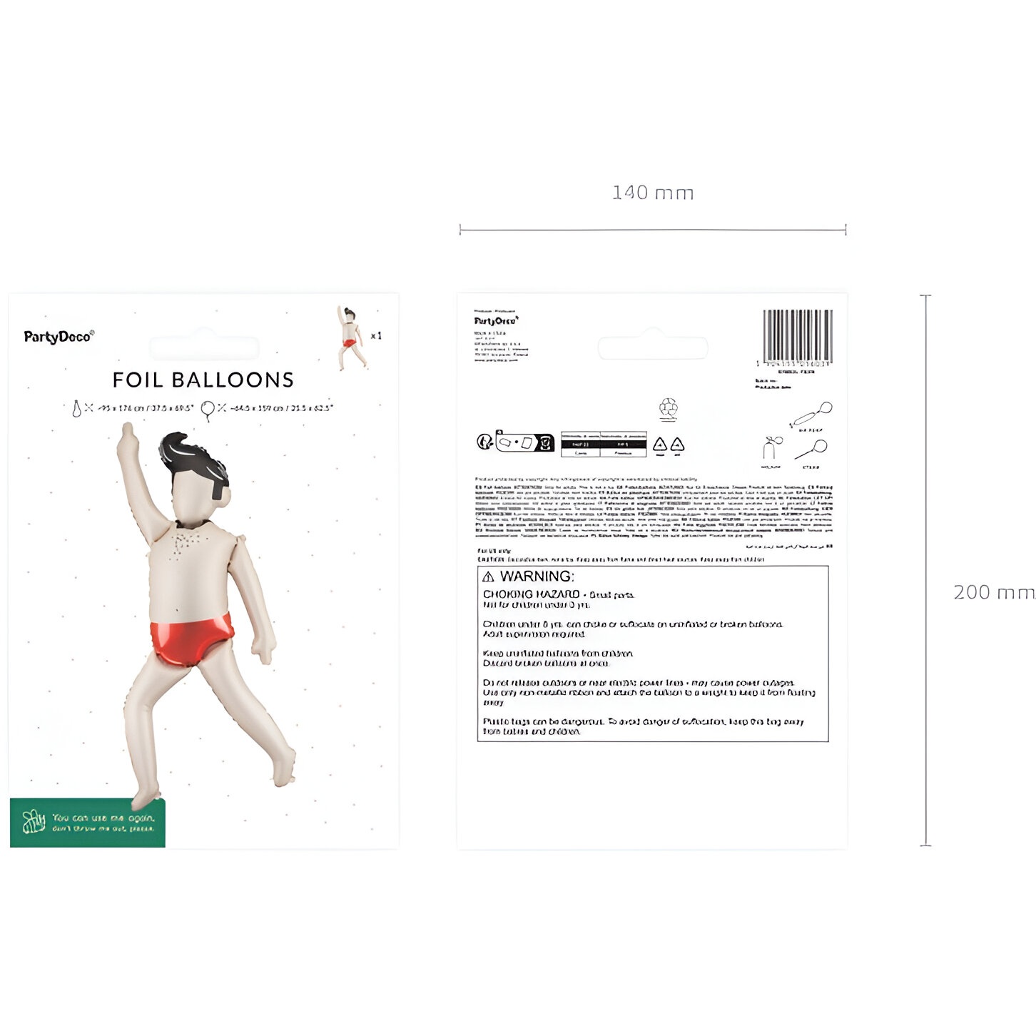 Ballon foil géant représentant la silhouette d'un homme dans des tons crème et rouge, avec cheveux noirs et détails amusants. À plat, il mesure environ 95 x 176 cm ; une fois gonflé, il atteint environ 64,5 x 159 cm. Il se gonfle à l'air ou à l'hélium pour s'adapter à différents montages et décorations. Il constitue un élément frappant et photogénique pour photocalls, anniversaires et célébrations, créant une atmosphère originale et ludique. Son design léger facilite sa mise en place et sa combinaison avec d'autres éléments de fête.