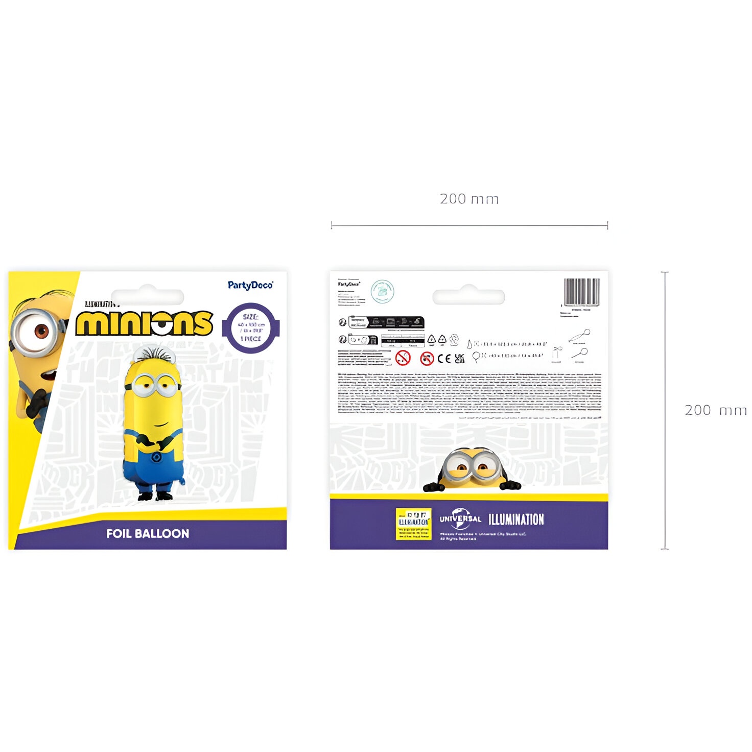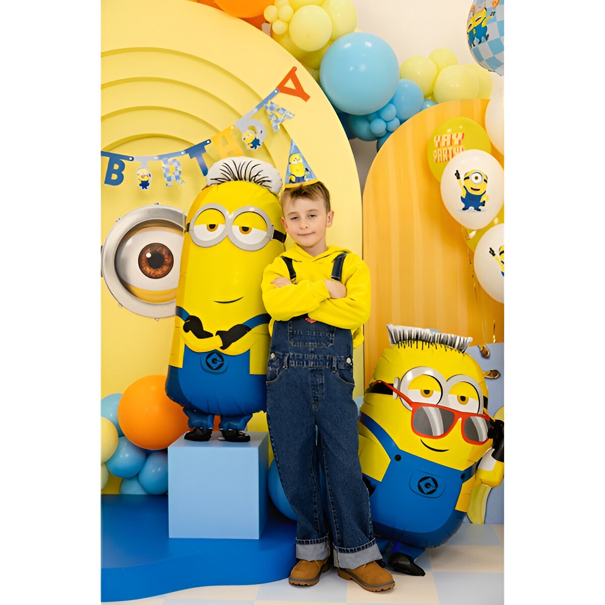 Ballon foil en forme du Minion Tim, aux couleurs jaune et bleu, avec une finition brillante qui apporte de la gaieté à toute fête d'enfants. Avant gonflage, il mesure environ 55,5 x 122,5 cm et, une fois gonflé, atteint environ 40 x 100 cm. Vous pouvez le gonfler à l'air ou à l'hélium selon vos besoins ; sa valve est auto-obturante pour une fermeture rapide et sûre. Il est équipé d'oeillets intégrés pour le suspendre ou le fixer facilement et garantir la stabilité de la décoration.