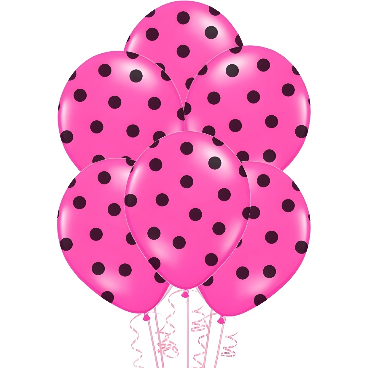 Ce lot contient 6 ballons en latex à pois noirs, parfaits pour accompagner n'importe quelle fête.