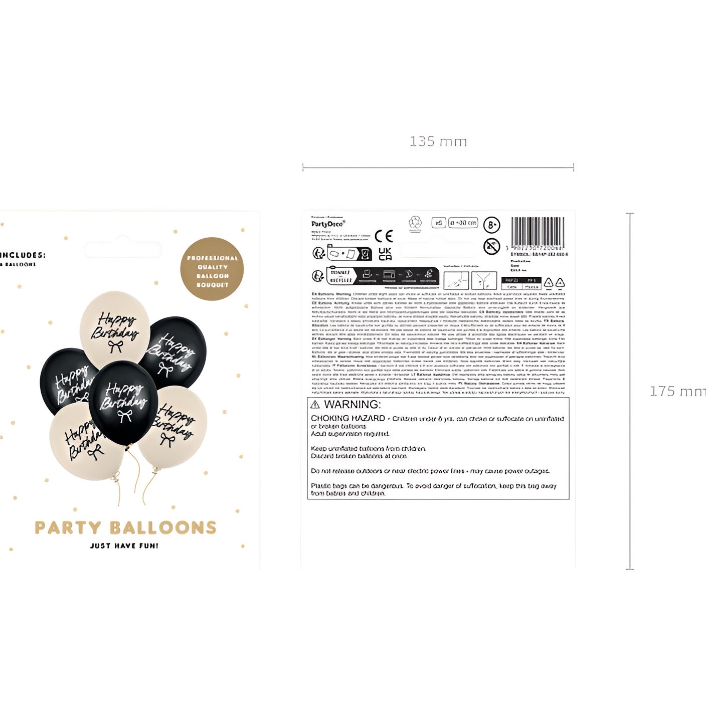 Ballons en latex Elegant Happy Birthday 30 cm - 6 unités