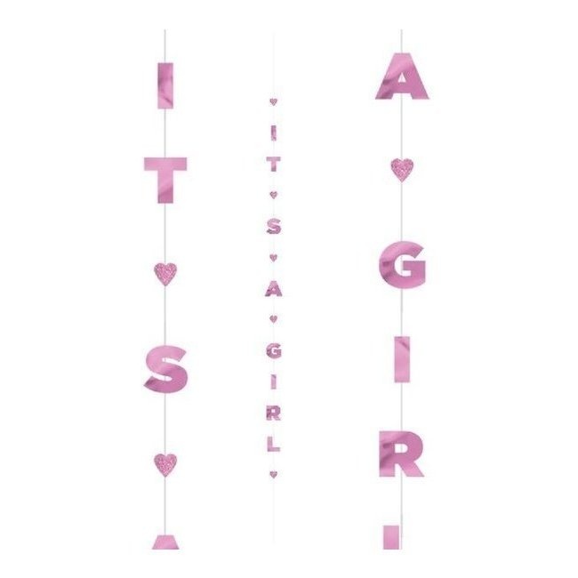 Décoration prête à attacher aux ballons de votre fête de baby shower. Elle se compose d'un fil de pêche décoré avec des lettres bleues ou roses.