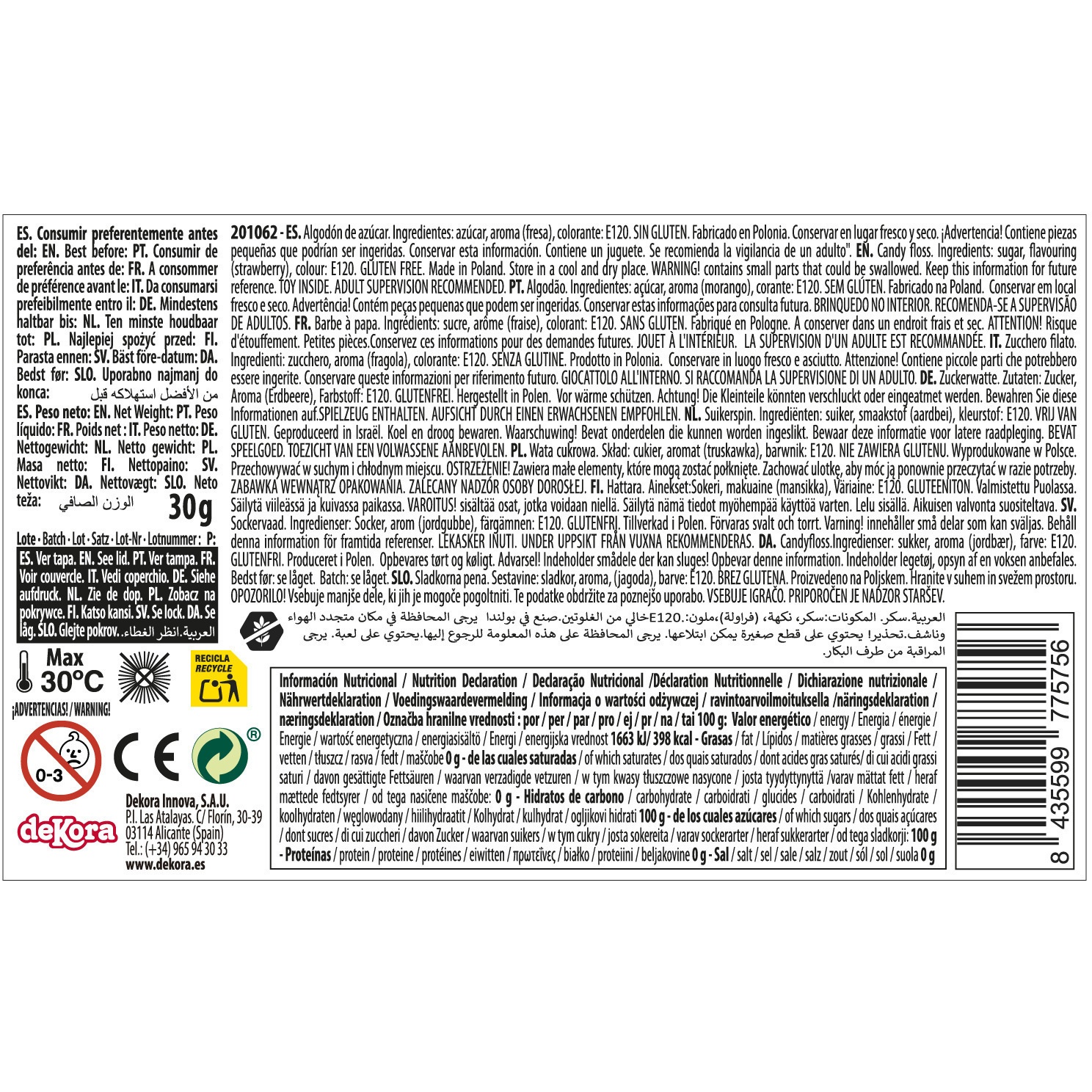 Ingrédients: sucre, arôme (fraise), colorant: E120.