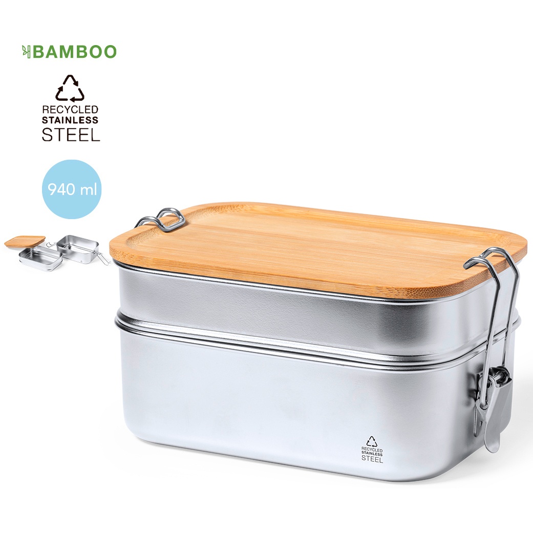 Boîte de 0,6 et 0,34 L en acier inoxydable avec 2 compartiments