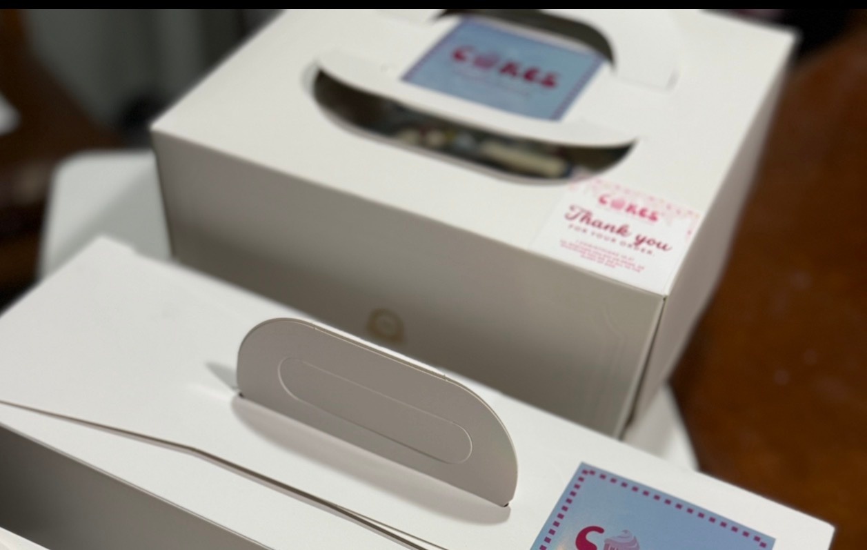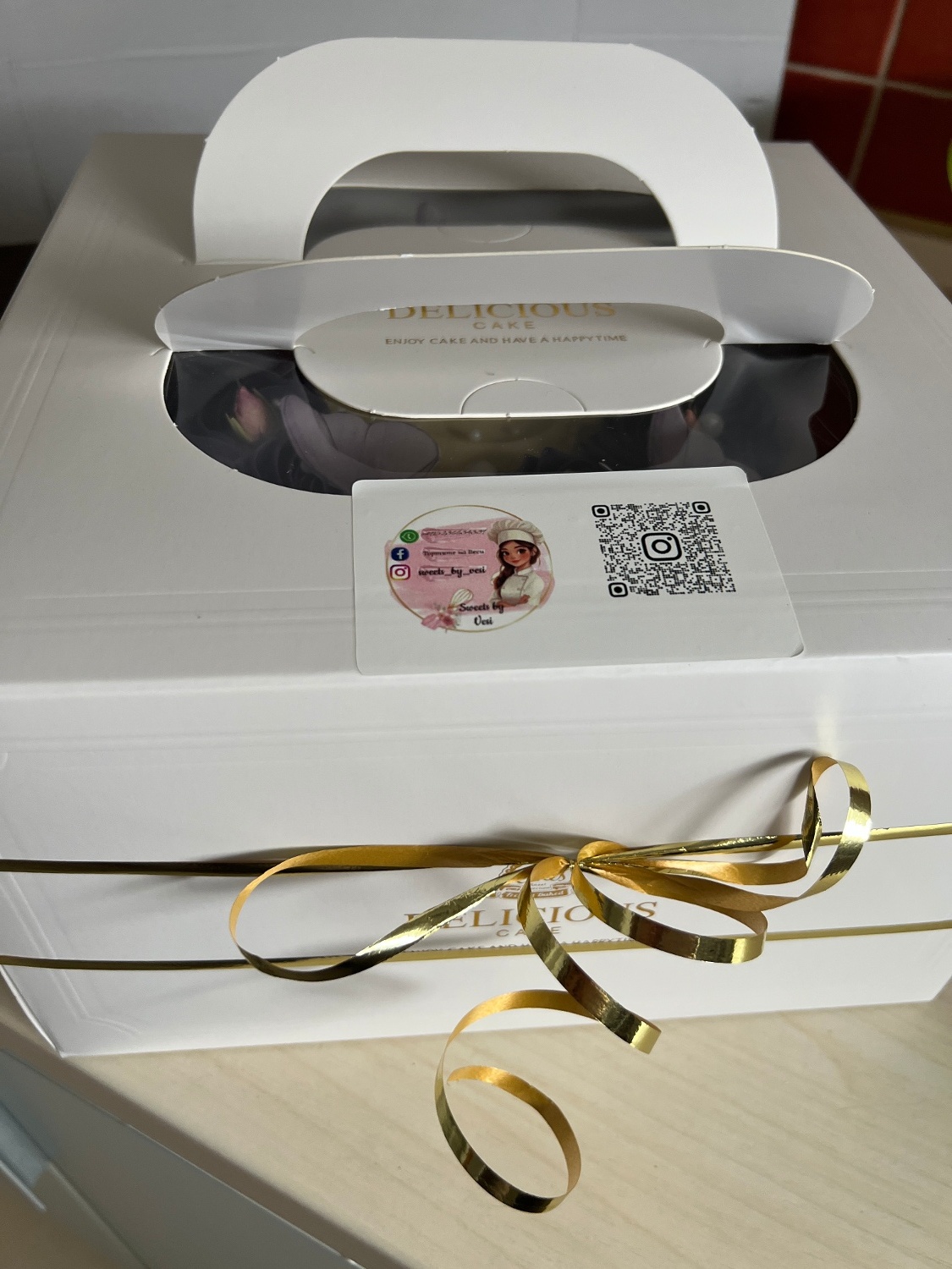 Élégante boîte en carton rigide, parfaite pour transporter et présenter des gâteaux, des pâtisseries et d'autres créations de boulangerie.