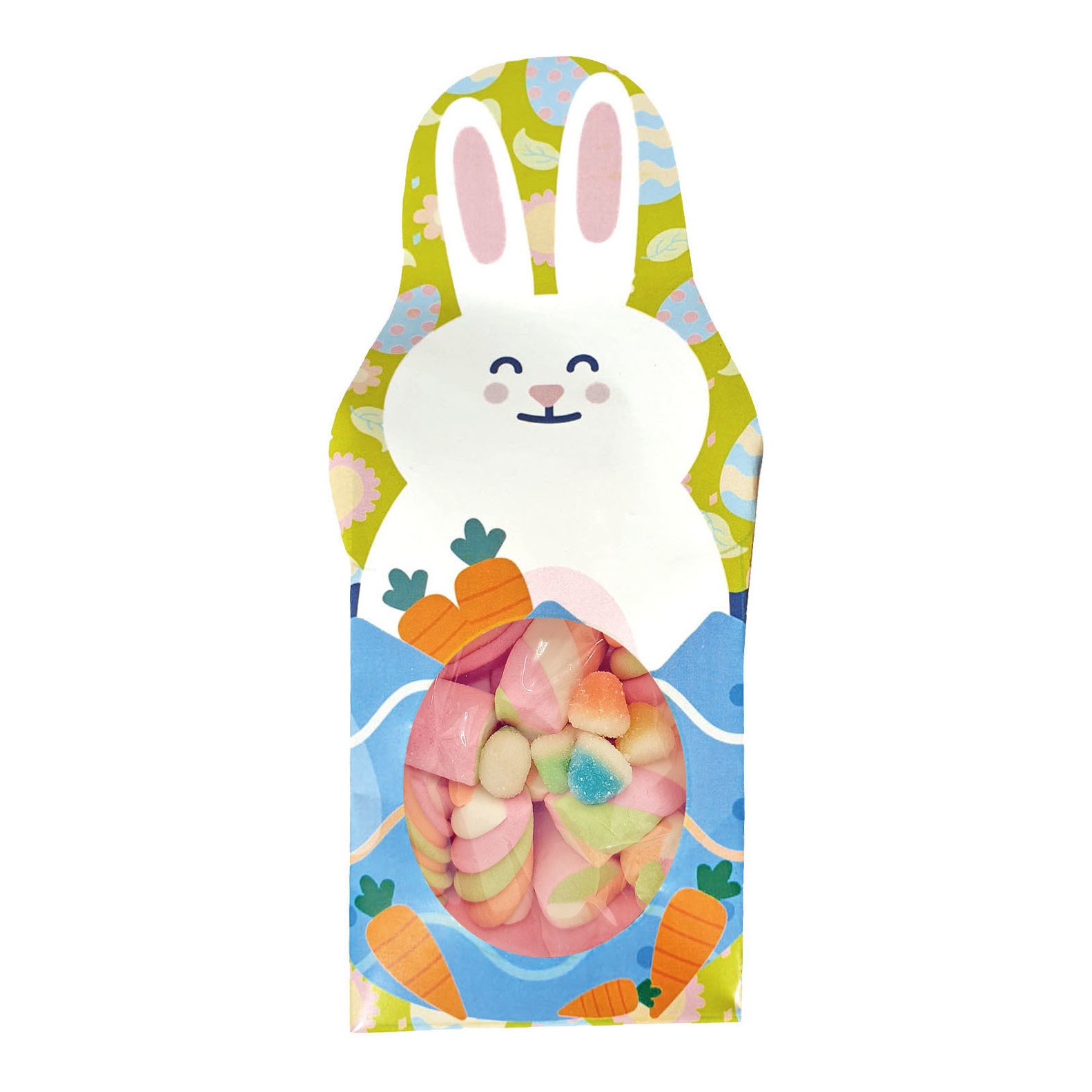 Une ravissante petite boîte ornée d'un adorable lapin, contenant un sachet de friandises.
