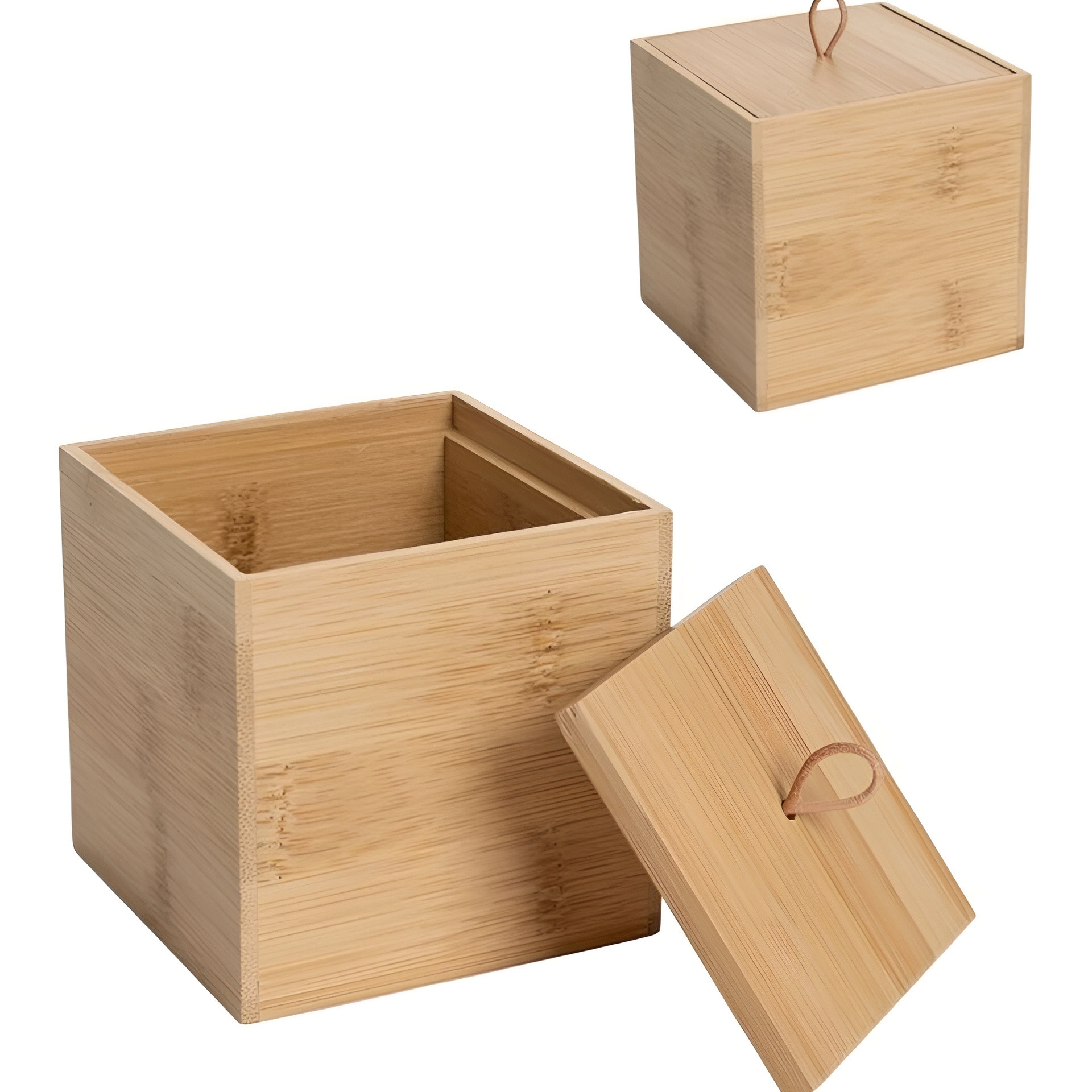 Boîte à cotons carrée en bambou