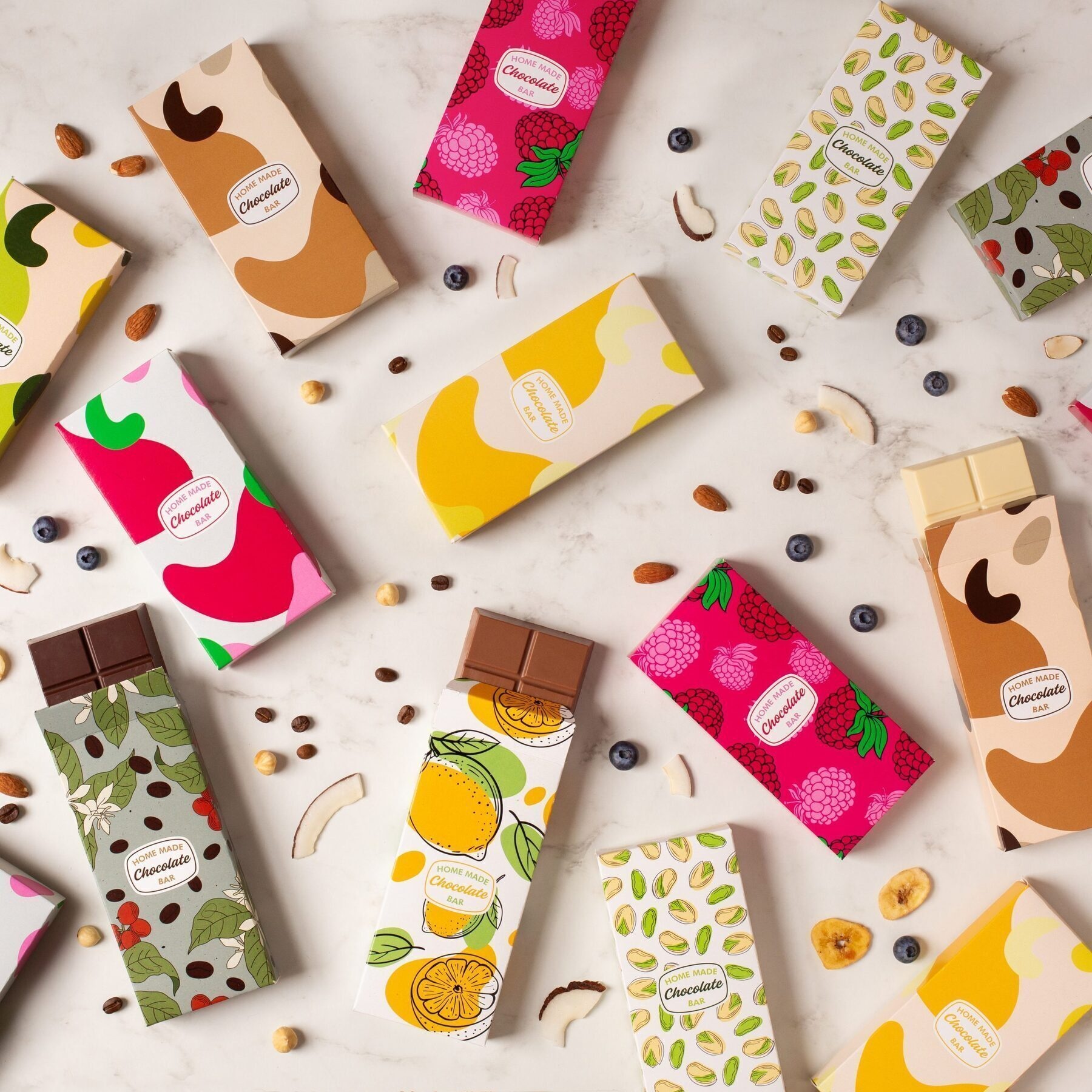 Producto de cartón apto para contacto con alimentos según su uso previsto; utilizar únicamente para envasar tabletas de chocolate u otros alimentos secos y a temperatura ambiente.
