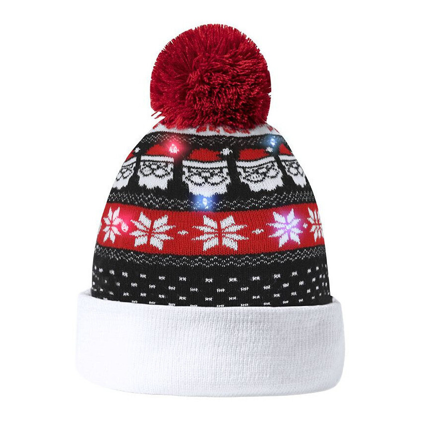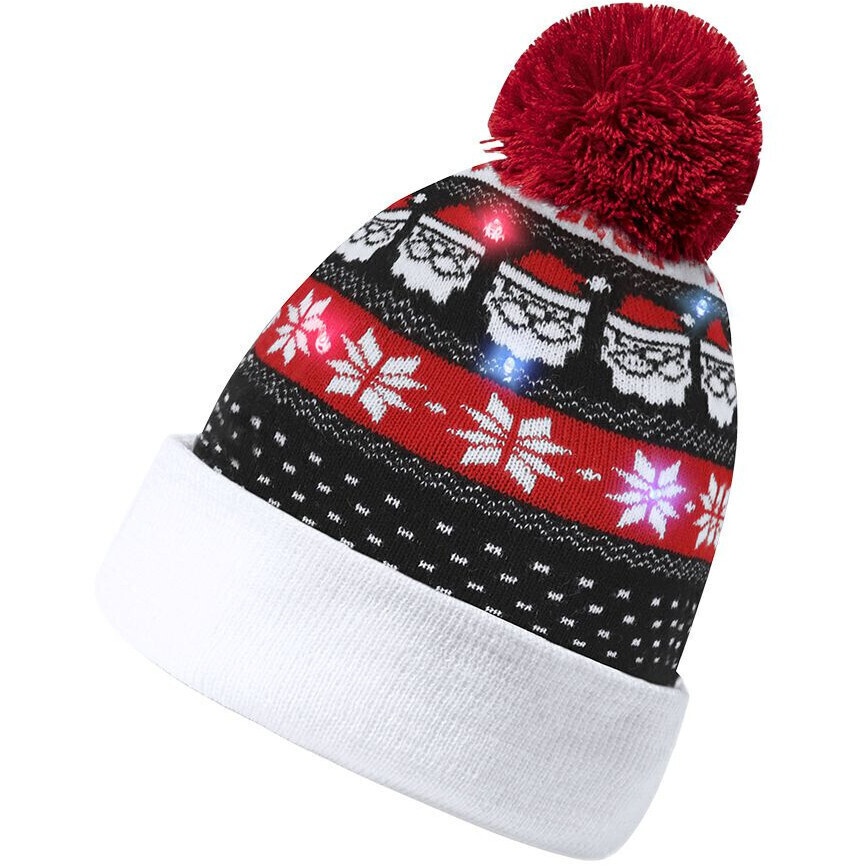 - Bonnet de Noël avec lumière LED et design à pompon.