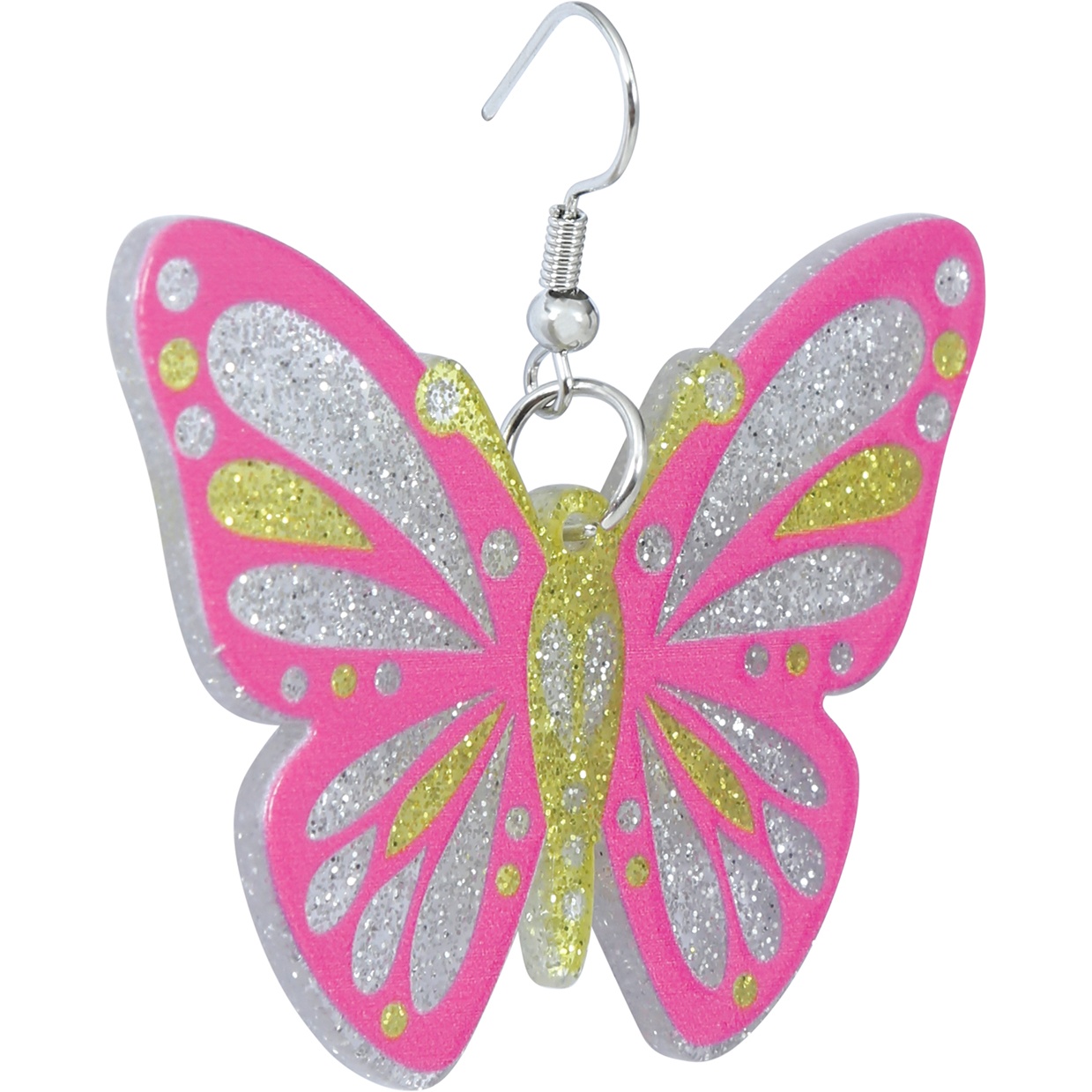 Charmantes boucles d'oreilles au motif papillon, conçues pour les fillettes. Elles se distinguent par leur couleur rose et leurs touches de paillettes qui apportent une note festive et scintillante. Légères et confortables, elles sont parfaites pour les fêtes, les anniversaires et comme accessoire de déguisement. Elles possèdent un fermoir clip orné d'une perle, facile à mettre et sécurisé pour les oreilles non percées. Matériaux: métal et PVC.
