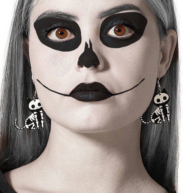 • Boucles d'oreilles avec motif de squelette de chat. Idéales pour des déguisements originaux et sombres.