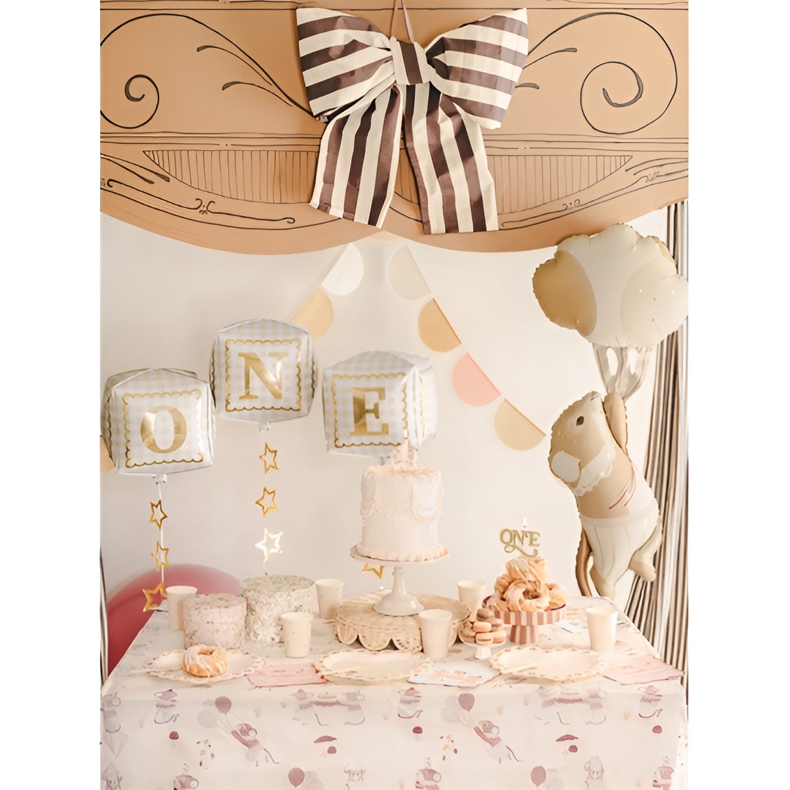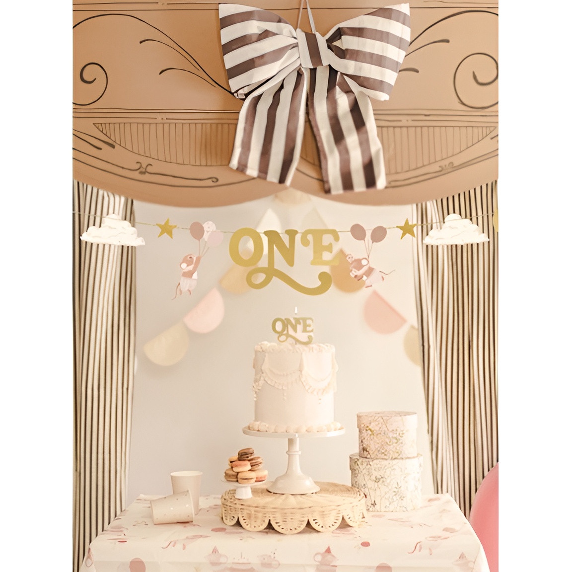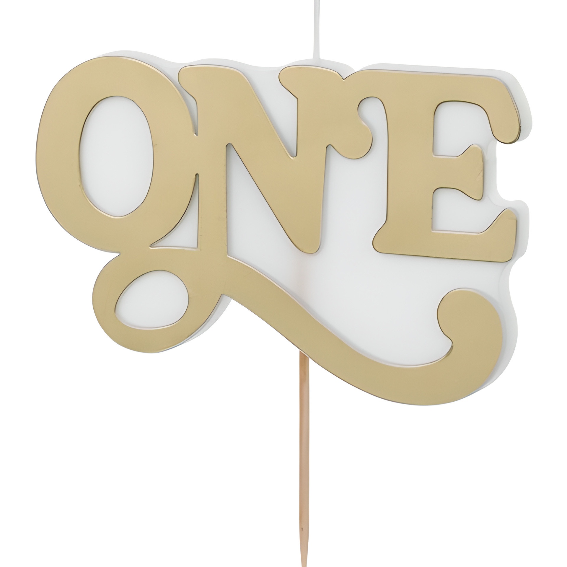 ONE en finition or froid: offrez une touche élégante à la pièce montée du premier anniversaire. Son lettrage saisissant et lisible se démarque sur les photos et lors des célébrations. Pose facile grâce à sa tige intégrée en bois. Elle apporte une finition festive et sophistiquée à toute décoration d'anniversaire.