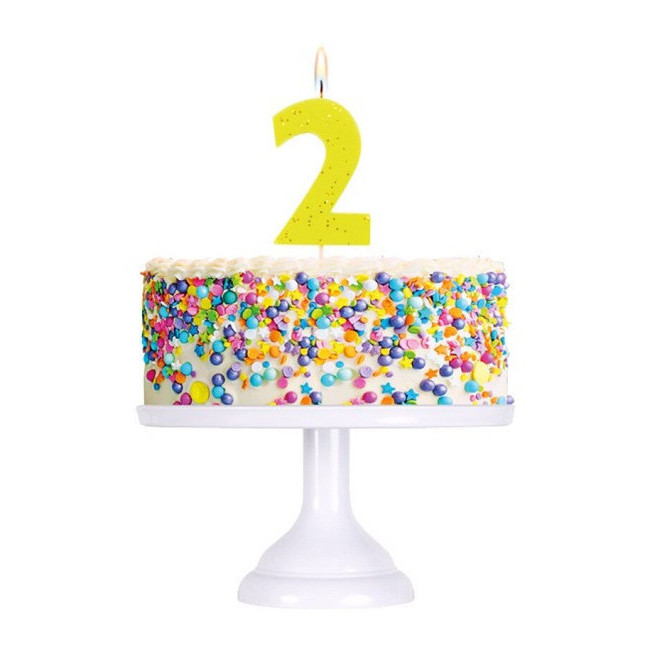Bougie en forme de chiffre couleur fluo avec paillettes, couleurs assorties - 1 unité