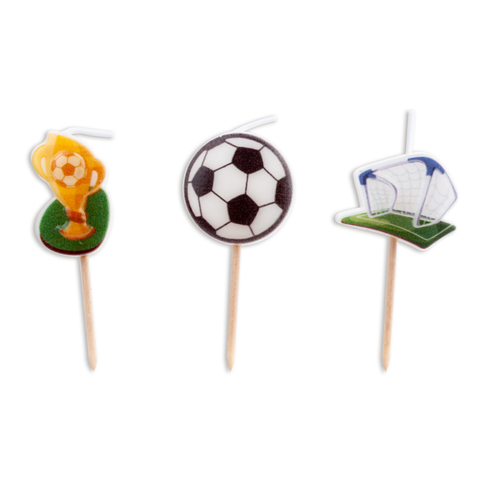 Bougies de football avec coupe, ballon et but - 3 unités