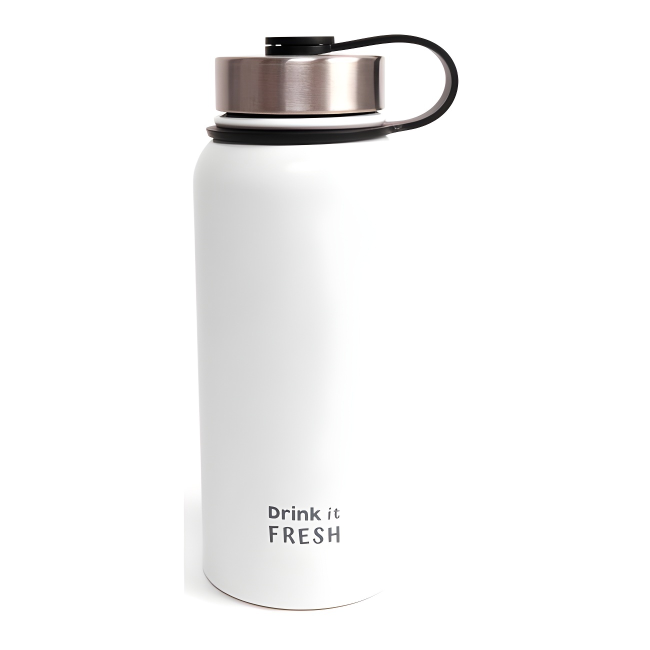 - Bouchon à vis attaché à la bouteille par une sangle en plastique