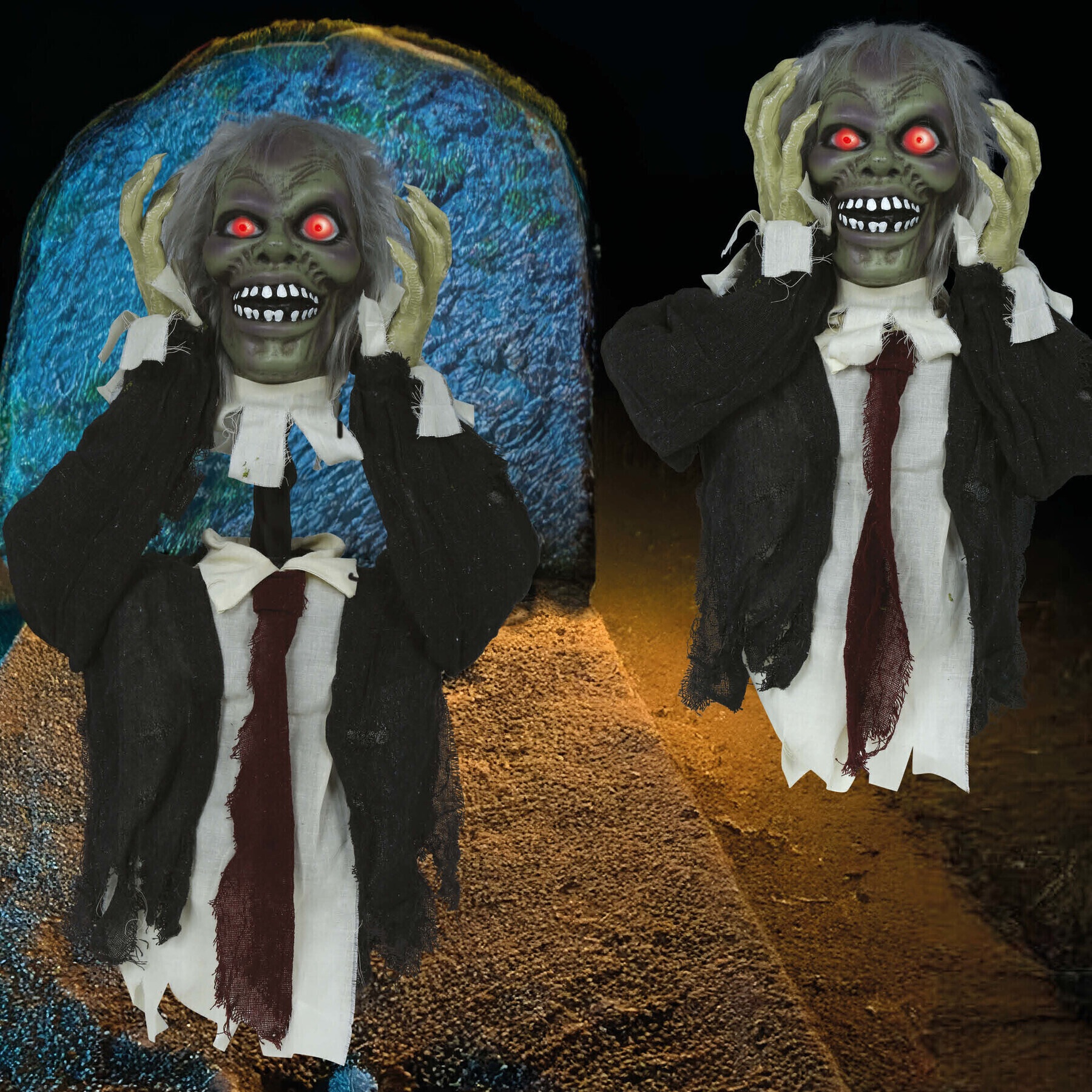 Buste de zombie avec lumière, son et mouvement de 55 cm