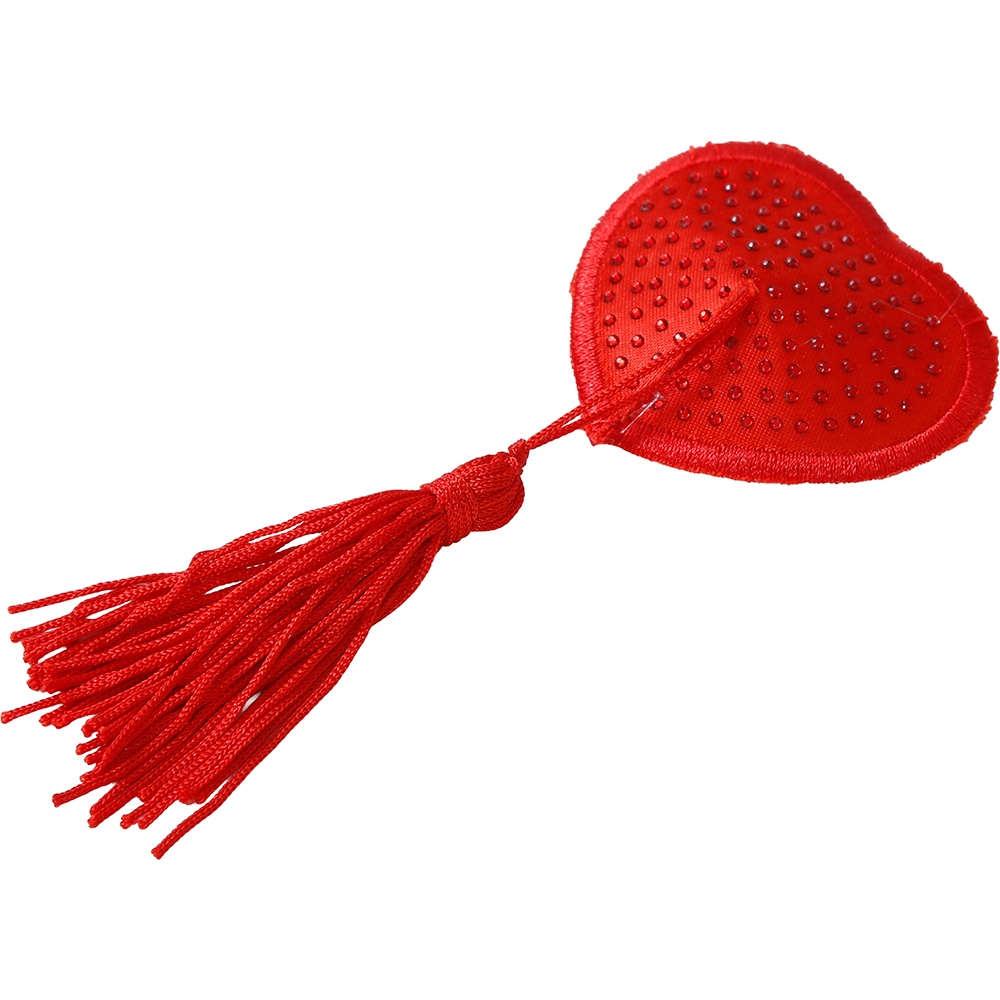 Accessoire sensuel et remarqué qui apporte une touche audacieuse et romantique à n'importe quel ensemble intime. Ces caches-tétons, de couleur rouge et en forme de coeur, sont dotés de longs pompons qui créent du mouvement et du style. Fabriqués en latex et polyester, ils allient souplesse et confort. Les perforations mettent en valeur la texture et la finition du produit. Légers et discrets, ils sont parfaits pour vous surprendre et sublimer vos tenues de soirée.