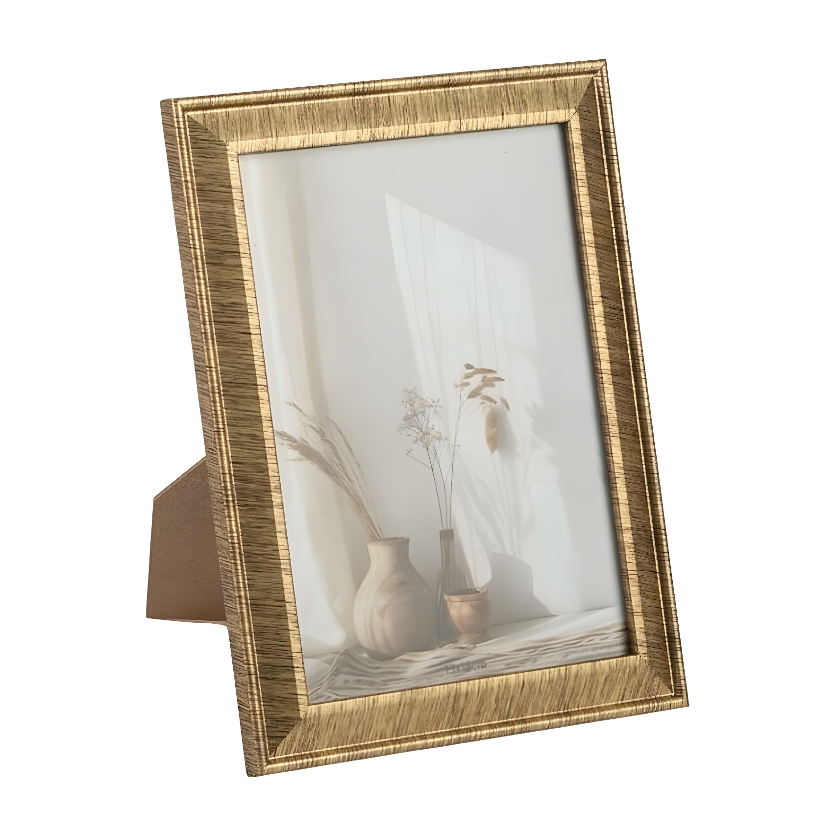 Cadre photo doré au fini vintage qui apporte une touche élégante et sophistiquée à n'importe quelle pièce. Son design classique met en valeur vos photos et tirages au format 13x18 cm avec délicatesse.