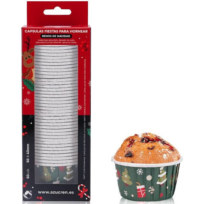 Cápsules pour cupcakes de 5 cm avec motif d'arbre de Noël - 50 unités