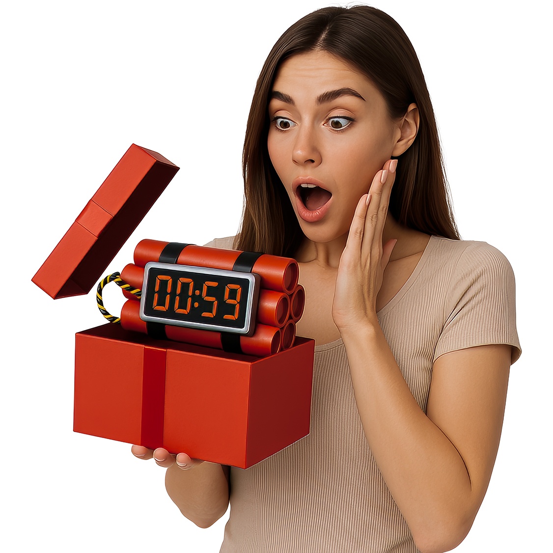 Accessoire de dynamite factice conçu pour compléter vos déguisements, vos scènes théâtrales et vos photocalls en leur apportant une touche d'humour et de dramatisme.