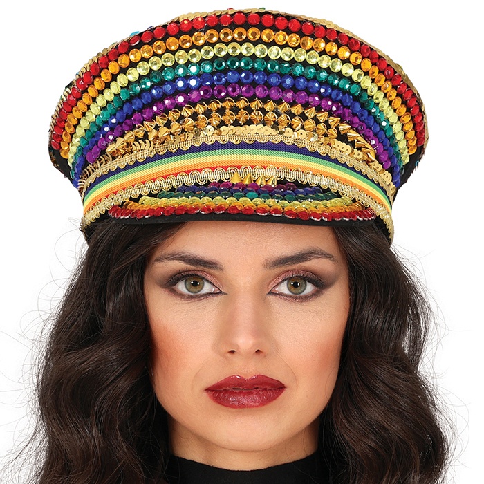 Casquette de policier multicolore avec strass