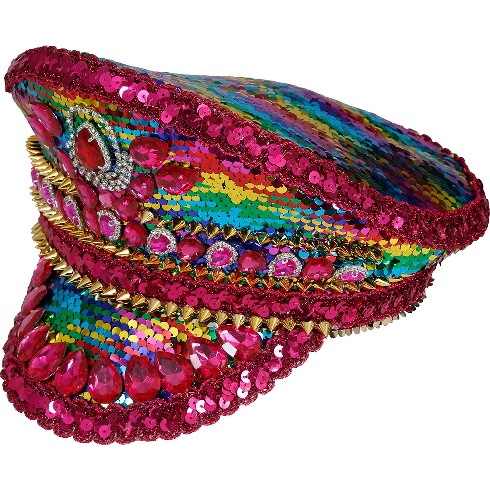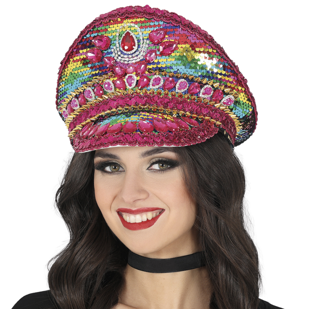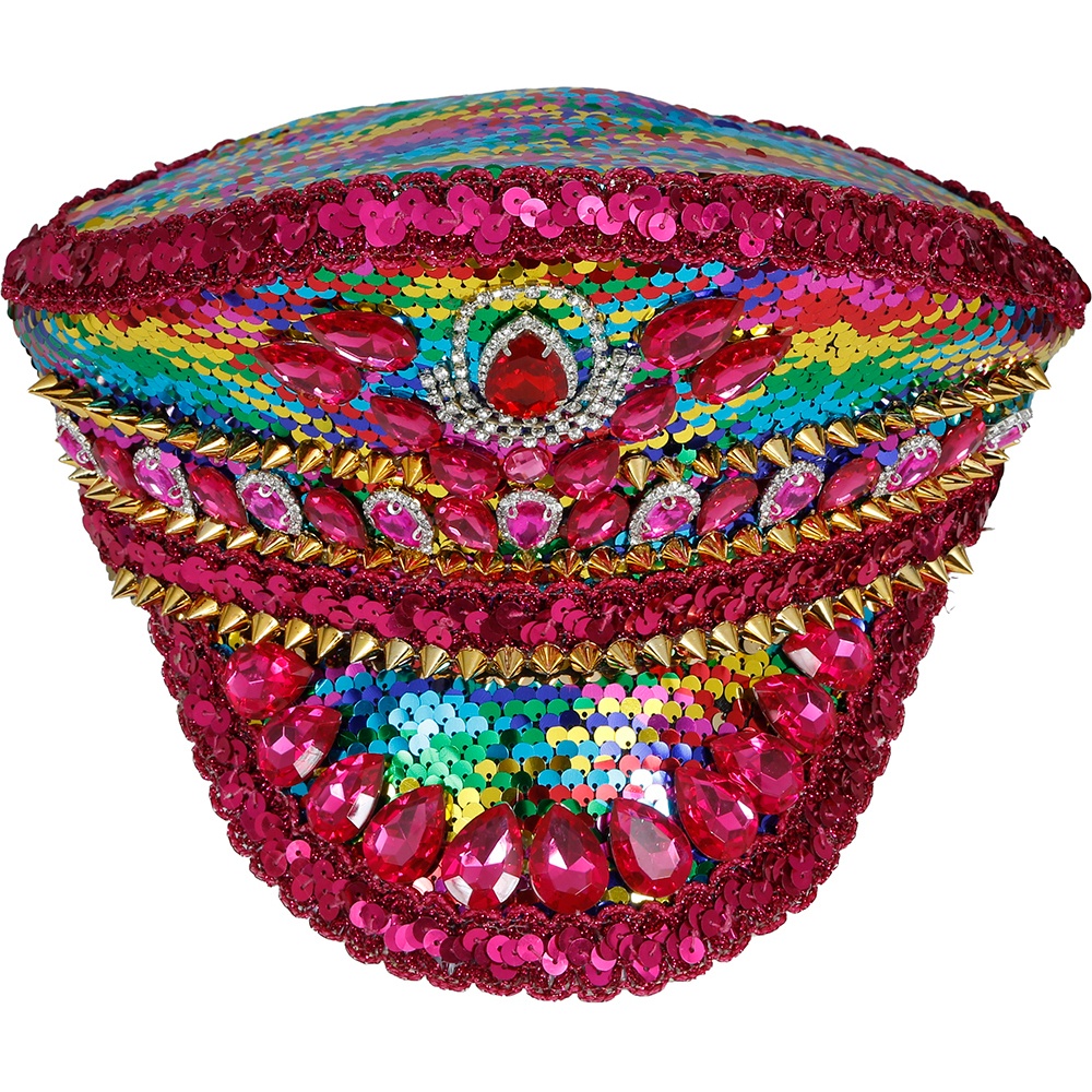 Casquette de police rose ornée de strass et de paillettes