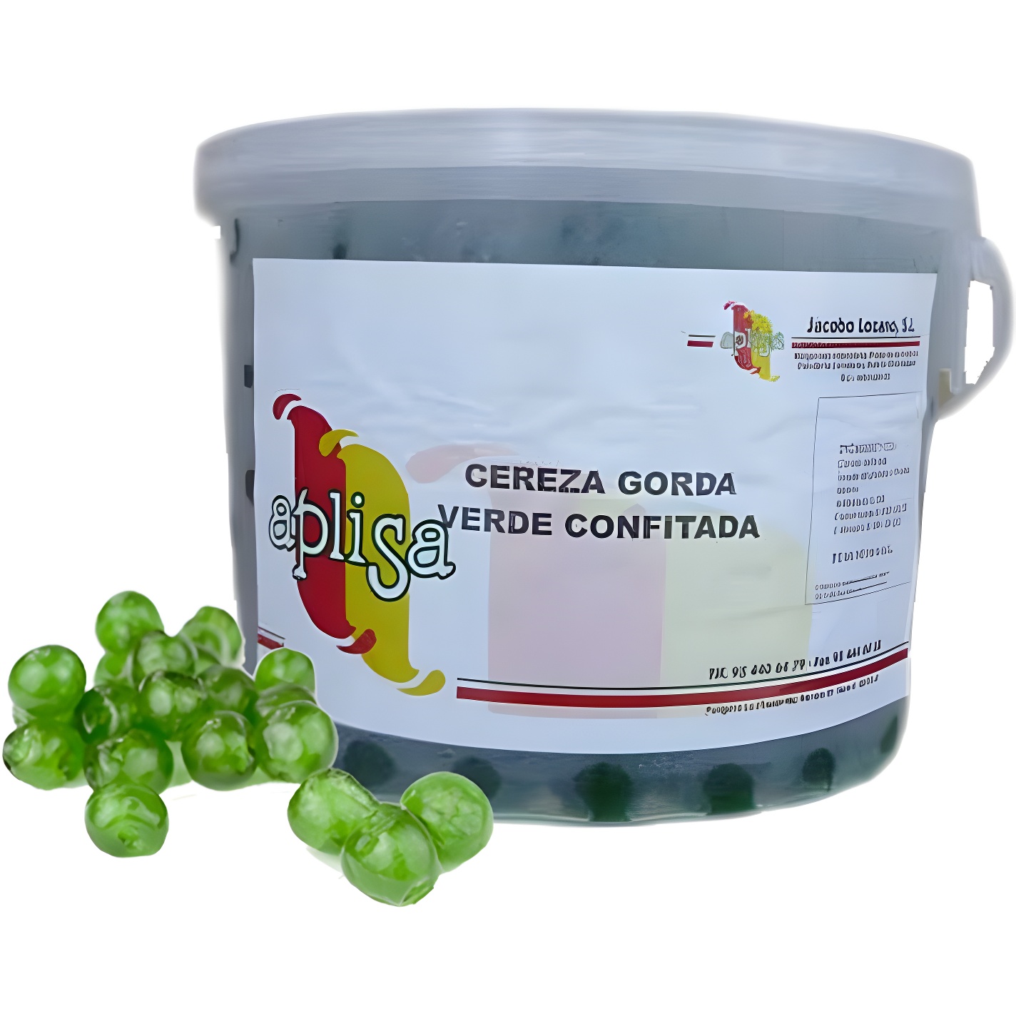 Cerises vertes confites de qualité professionnelle, spécialement conçues pour la pâtisserie et l'hôtellerie.