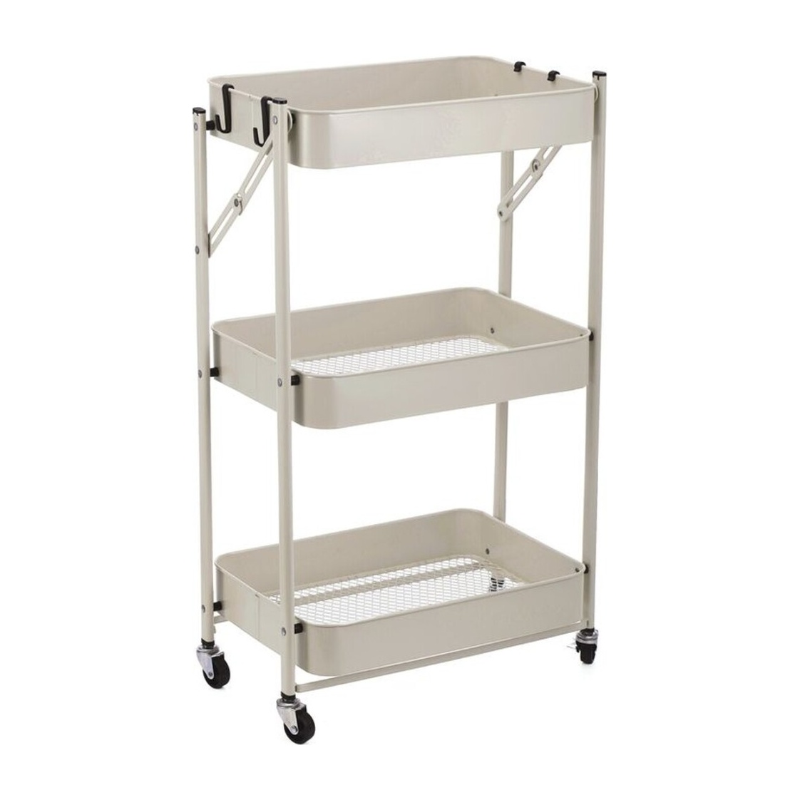 Chariot d'appoint pliable polyvalent, finition naturelle, conçu pour vous aider à organiser la cuisine et votre intérieur. Sa structure à trois niveaux offre un espace pratique pour ustensiles, produits d'entretien, accessoires de salle de bain ou fournitures de bureau. Les roues pivotantes et le format compact facilitent le déplacement entre les pièces et le rangement lorsqu'il n'est pas utilisé. La finition neutre s'intègre à tous les styles décoratifs.