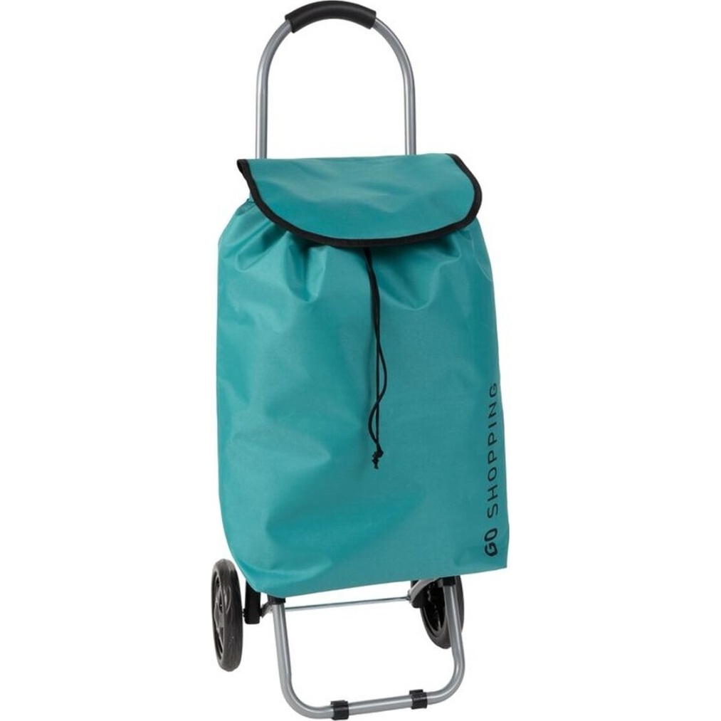 Chariot de course pliable de couleur turquoise, conçu pour rendre vos courses quotidiennes plus agréables. Léger et résistant, il offre l'équilibre parfait entre facilité d'utilisation et durabilité. Son design pliable permet de le ranger dans des espaces réduits et de le transporter sans effort. Roues robustes et poignée ergonomique assurent un déplacement stable et confortable.