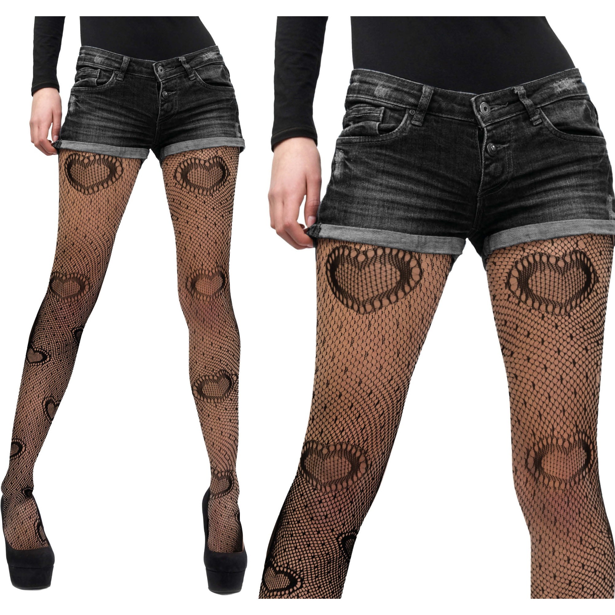 - Motif de coeurs intégré à la résille pour un look féminin et audacieux.