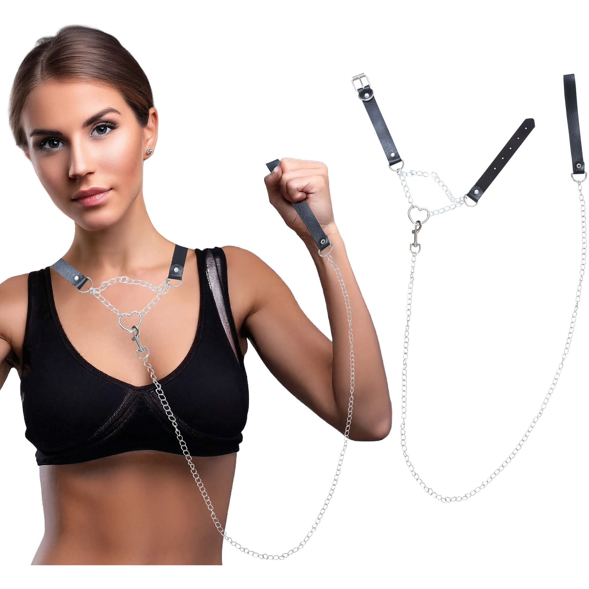 Chaîne métallique résistante combinée à des sangles réglables permettant d'ajuster le maintien selon vos préférences.