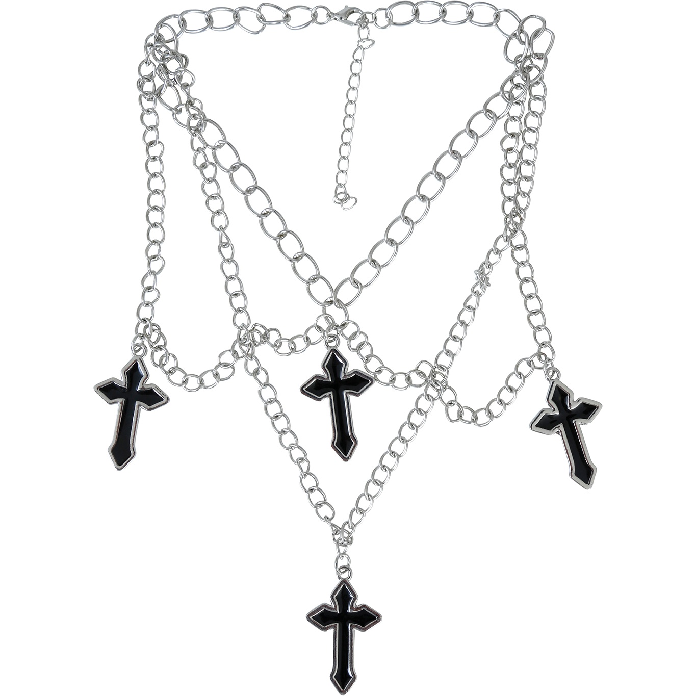 Collier multi-rangs à quatre croix au style streetwear urbain. Il apporte une touche audacieuse et contemporaine à vos looks décontractés et inspirés de la rue. Les quatre croix pendent sur des chaînes de différentes longueurs pour un effet superposé très actuel. Il est doté d'une chaîne avec fermoir ajustable afin que vous puissiez régler la longueur selon votre style. Conçu en métal avec un contraste sombre sur les croix, il offre un rendu visuel saisissant et une bonne résistance.