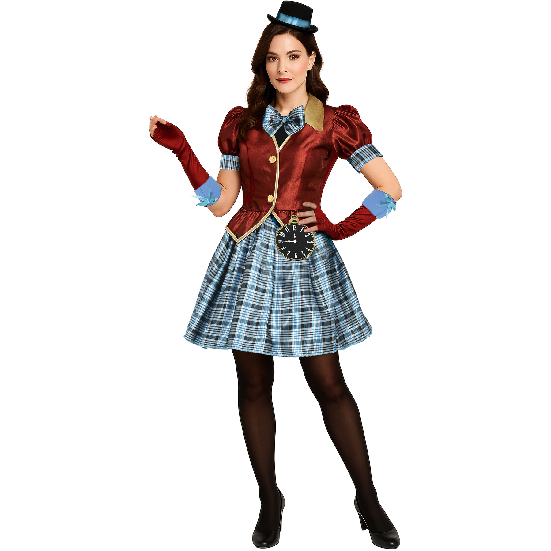 Modèle amusant de chapelière folle pour femme. Il s'agit d'une robe qui est complétée par un chapeau et des manches.