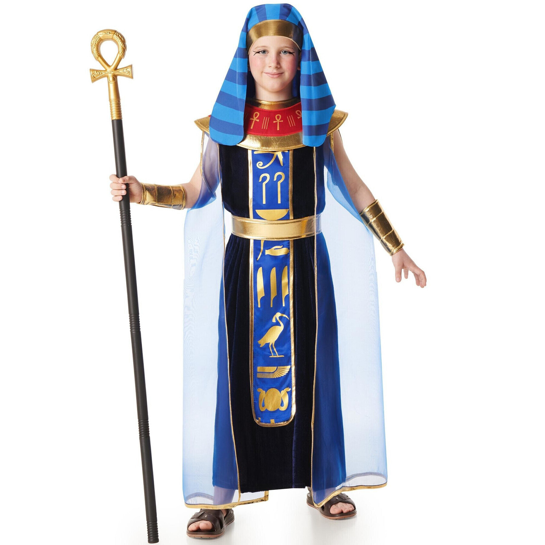 Modèle impressionnant de pharaon égyptien pour enfant, avec un tissu imitant le velours. Idéal pour impressionner lors du carnaval ou de toute fête costumée.