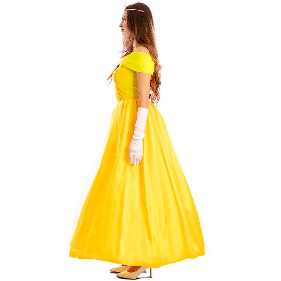 Costume de princesse de conte jaune pour femme