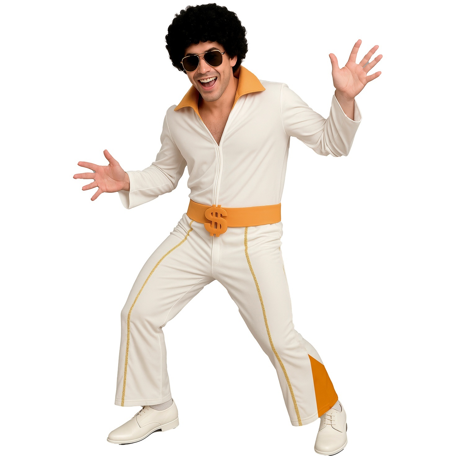 Devenez la légende du rock avec ce déguisement « Roi du Rock » finition dorée. Design inspiré des costumes emblématiques d'Elvis, avec col montant et style rétro qui attirent tous les regards. Idéal pour les soirées à thème, les représentations et le Carnaval ; confortable et facile à porter toute la nuit. Tissu polyester résistant, simple d'entretien.