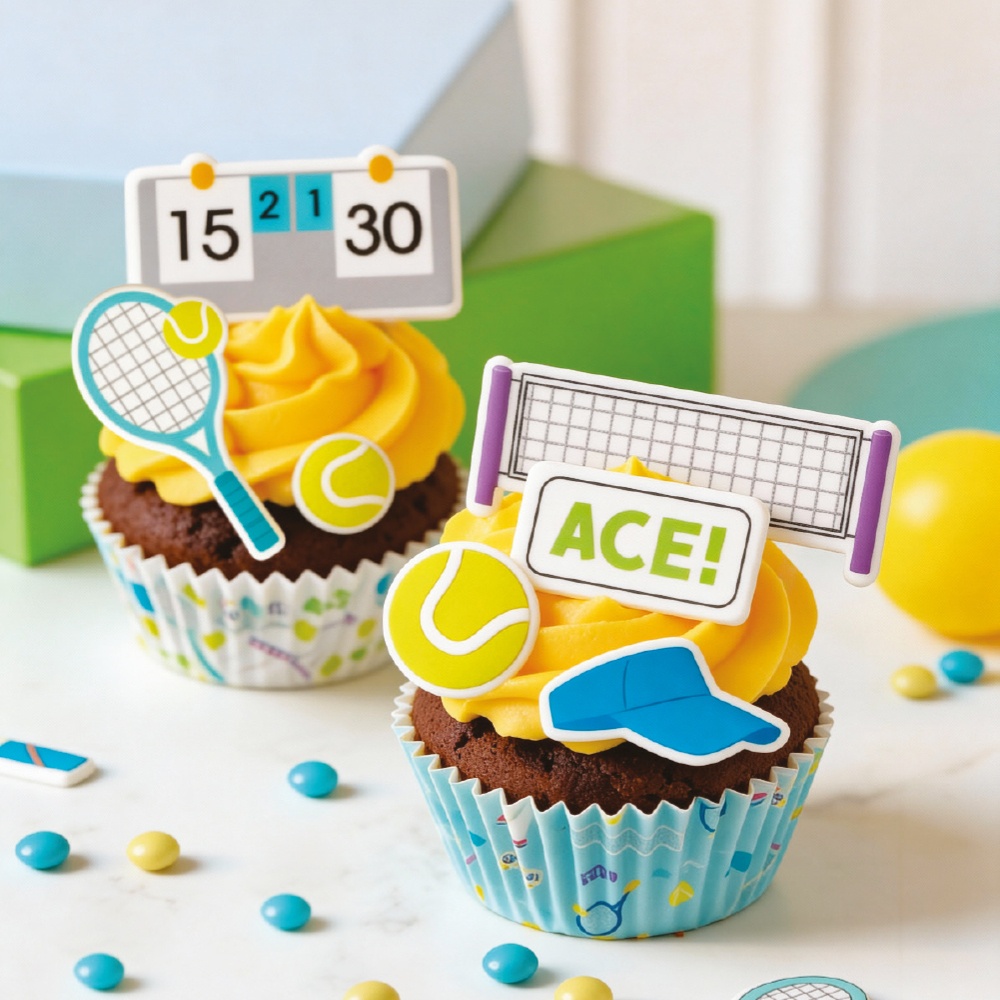 Décorations en sucre 2D pour cupcakes - Tennis - 12 pièces