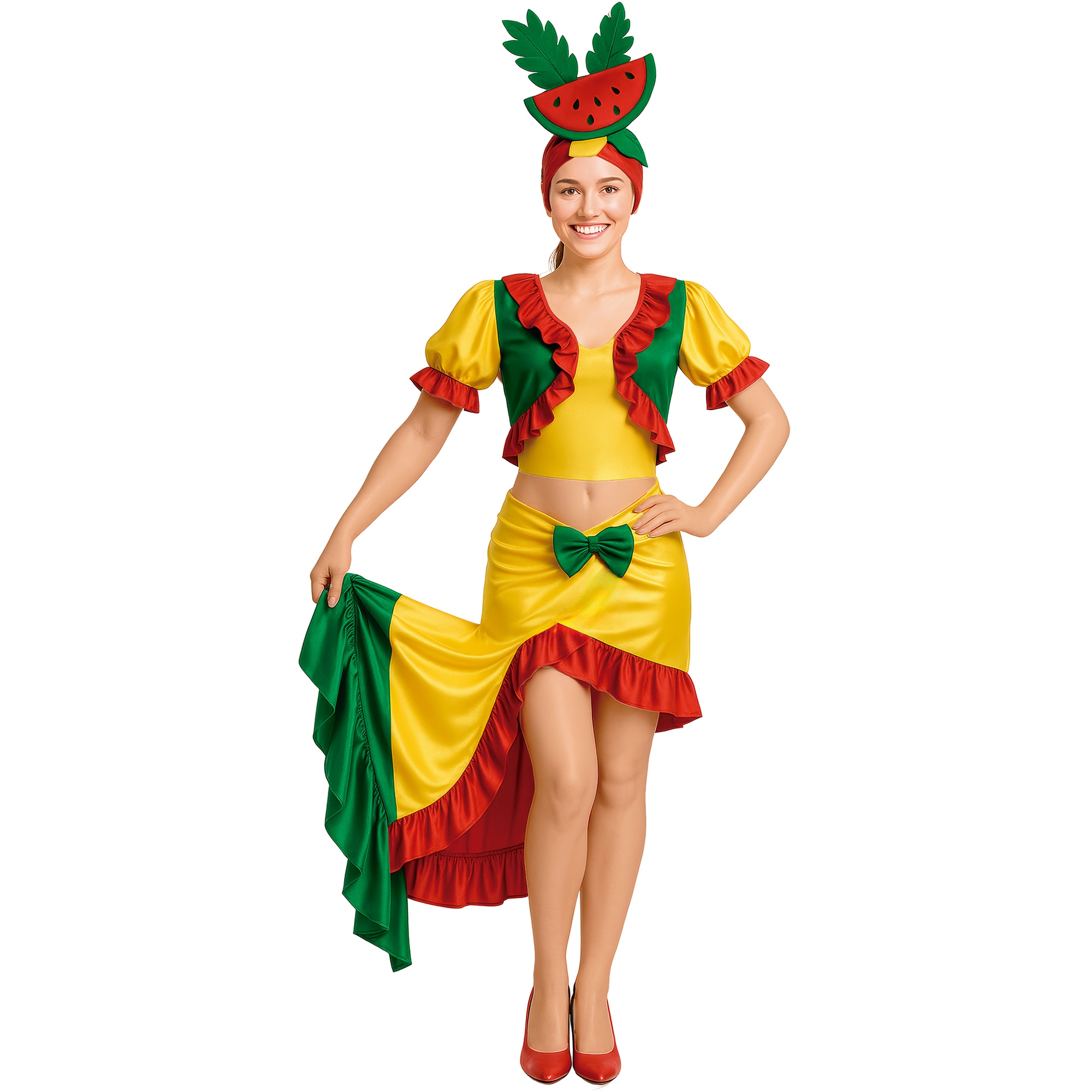 Ce déguisement Cubana, au caractère joyeux et coloré, est conçu pour vous faire remarquer lors des défilés et célébrations.