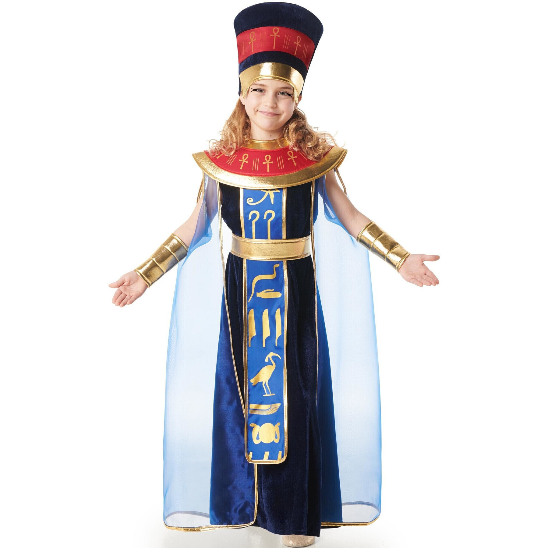 Déguisement de pharaonne égyptienne en velours bleu pour fille