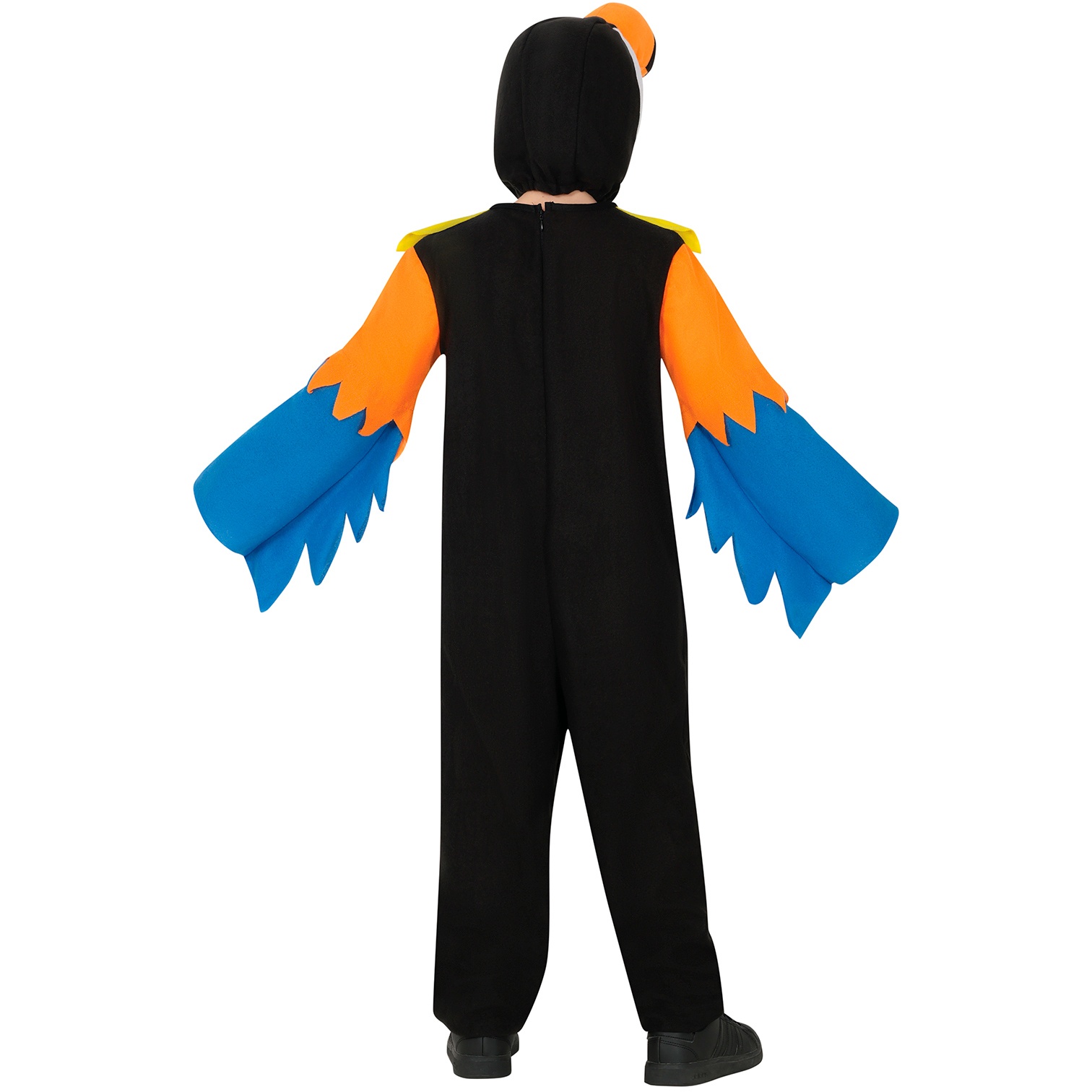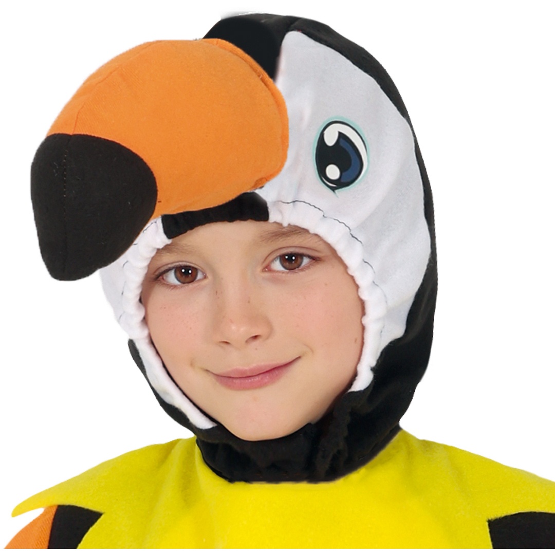 Modèle coloré de toucan pour enfants. Il s'agit d'une combinaison à capuche avec de très jolis détails colorés sur les manches.