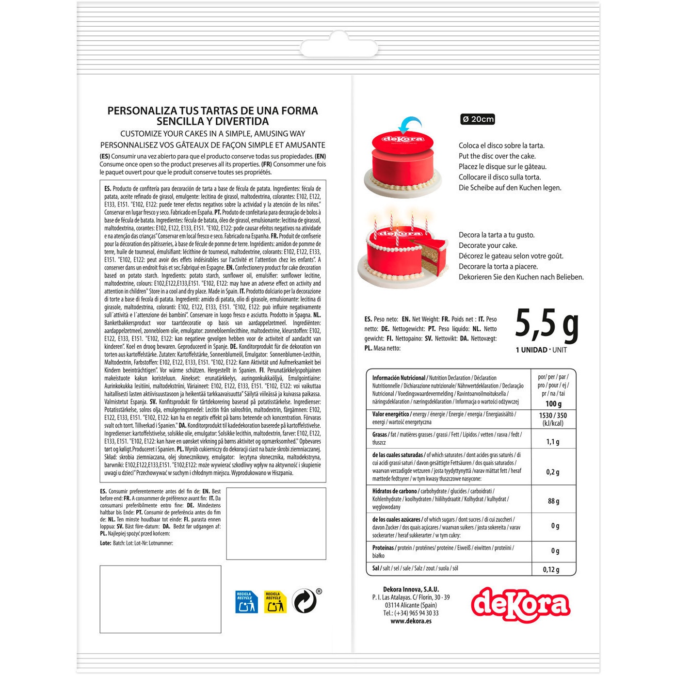 Ingrédients: Huile de tournesol, Fécule de pomme de terre, Colorants: E102, E122, E133, E151, Épaississant: maltodextrine, Émulsifiants: lécithine de tournesol.