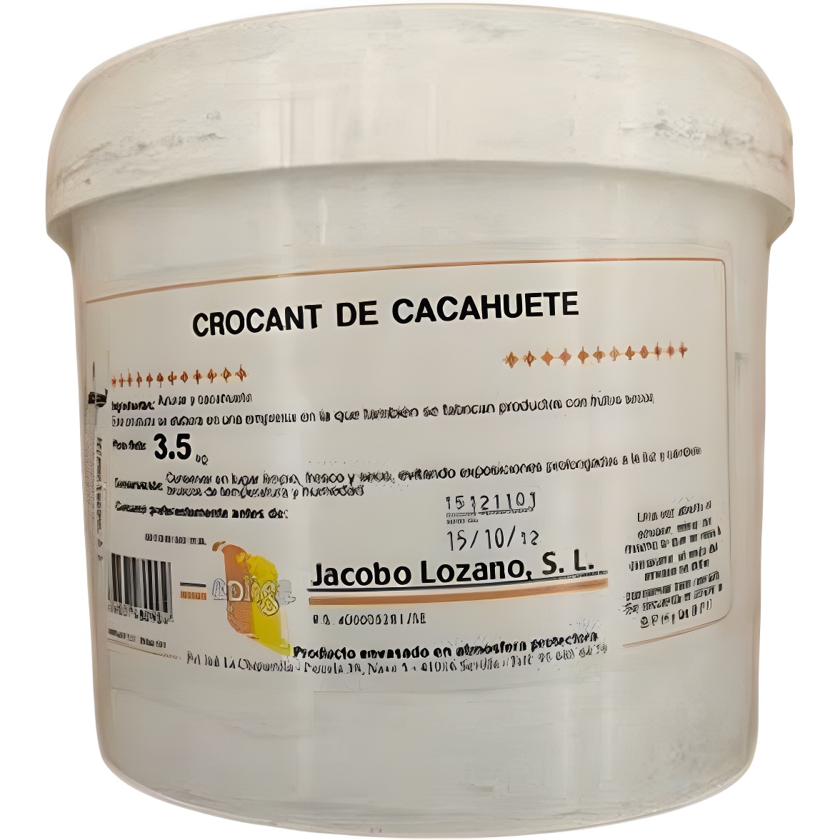 Crocant de cacahuète à la texture extra croustillante, conçu pour apporter saveur et finition professionnelle à vos préparations. Conditionné en seau de 3,5 kg, pratique pour ateliers et pâtisseries. Produit emballé sous atmosphère protectrice pour préserver fraîcheur et croquant. Convient aux personnes coeliaques (sans gluten) et sans colorants ni conservateurs. Déconseillé aux personnes diabétiques et aux personnes allergiques à la cacahuète ; peut contenir des traces de fruits à coque. Après ouverture, prélevez la quantité nécessaire et refermez l'emballage pour éviter l'absorption d'humidité.