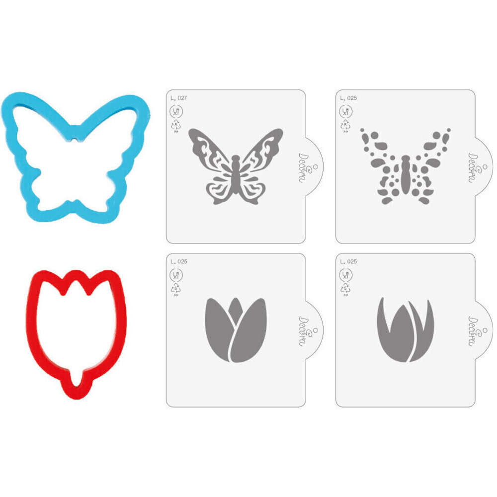 Emporte-pièces papillon et tulipe avec pochoirs