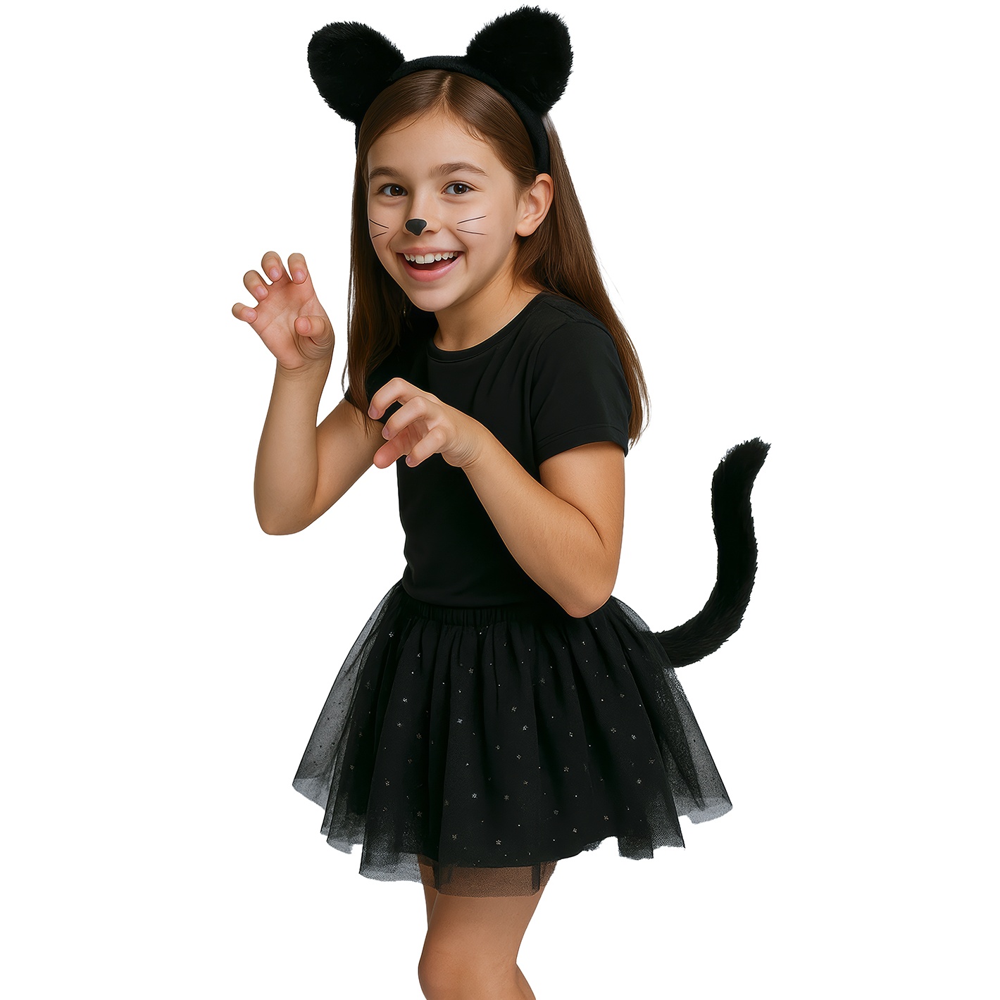 Déguisement ludique et facile à assortir pour votre enfant qui souhaite adopter un look félin lors du Carnaval ou des fêtes pour enfants. Léger et confortable, il permet de jouer et de danser en toute liberté. Sa finition discrètement scintillante apporte une touche festive et attrayante. Idéal pour composer rapidement un déguisement charmant, sans complication.